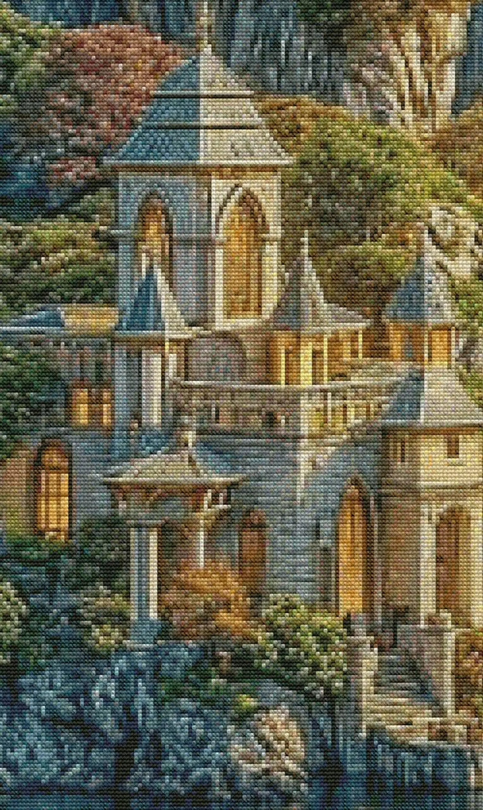 Mountain castle (400x710 stitches), DMC cross stitch pattern, pdf/xsd, Needlework Embroidery Crafts DIY DMC color