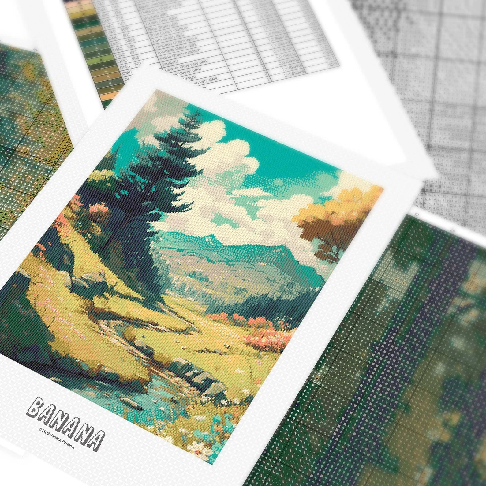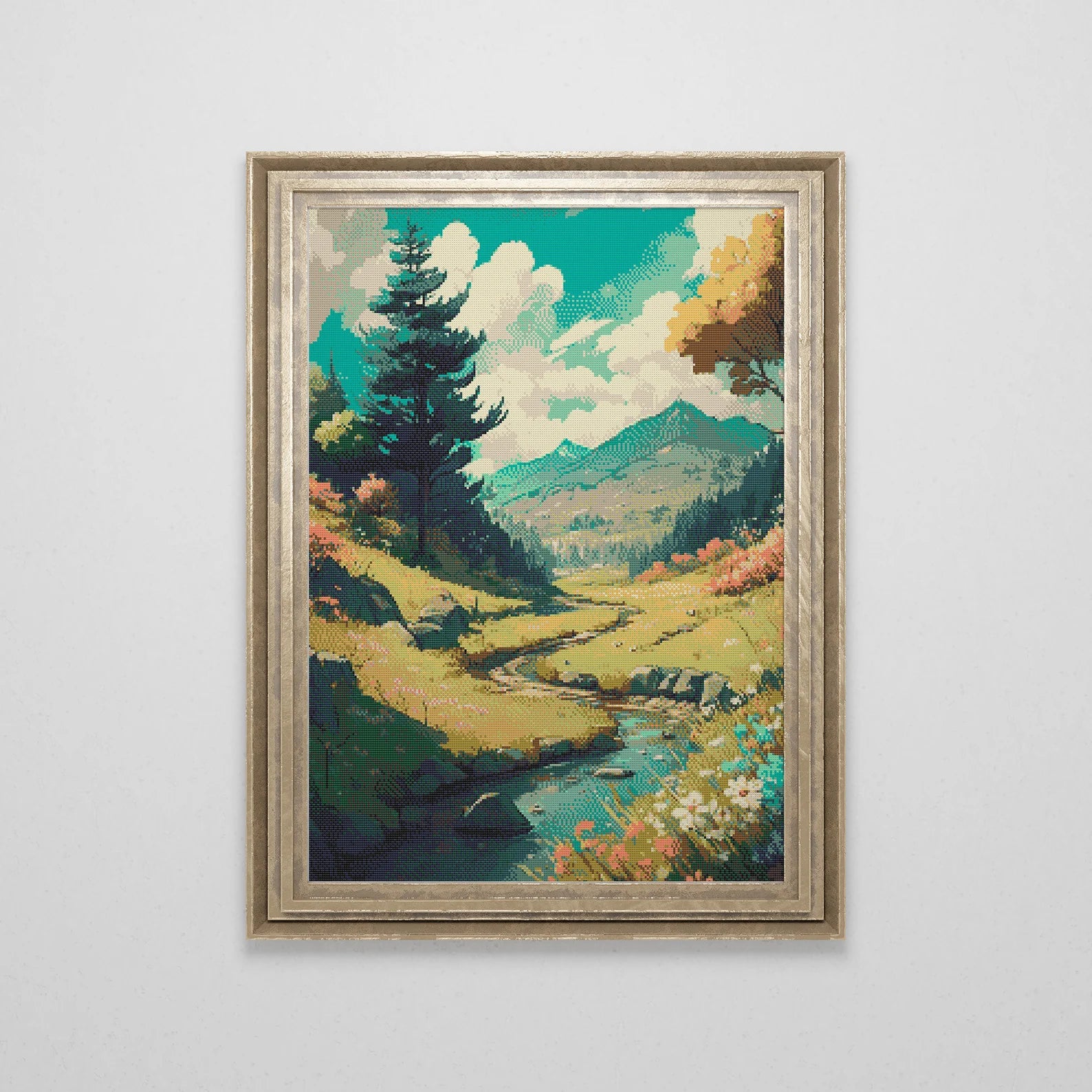 Mountain Meadow Cross Stitch Pattern | Anime Landscape Cross Stitch Chart Download | Nature Cross Stitch | Large Modern Cross Stitch