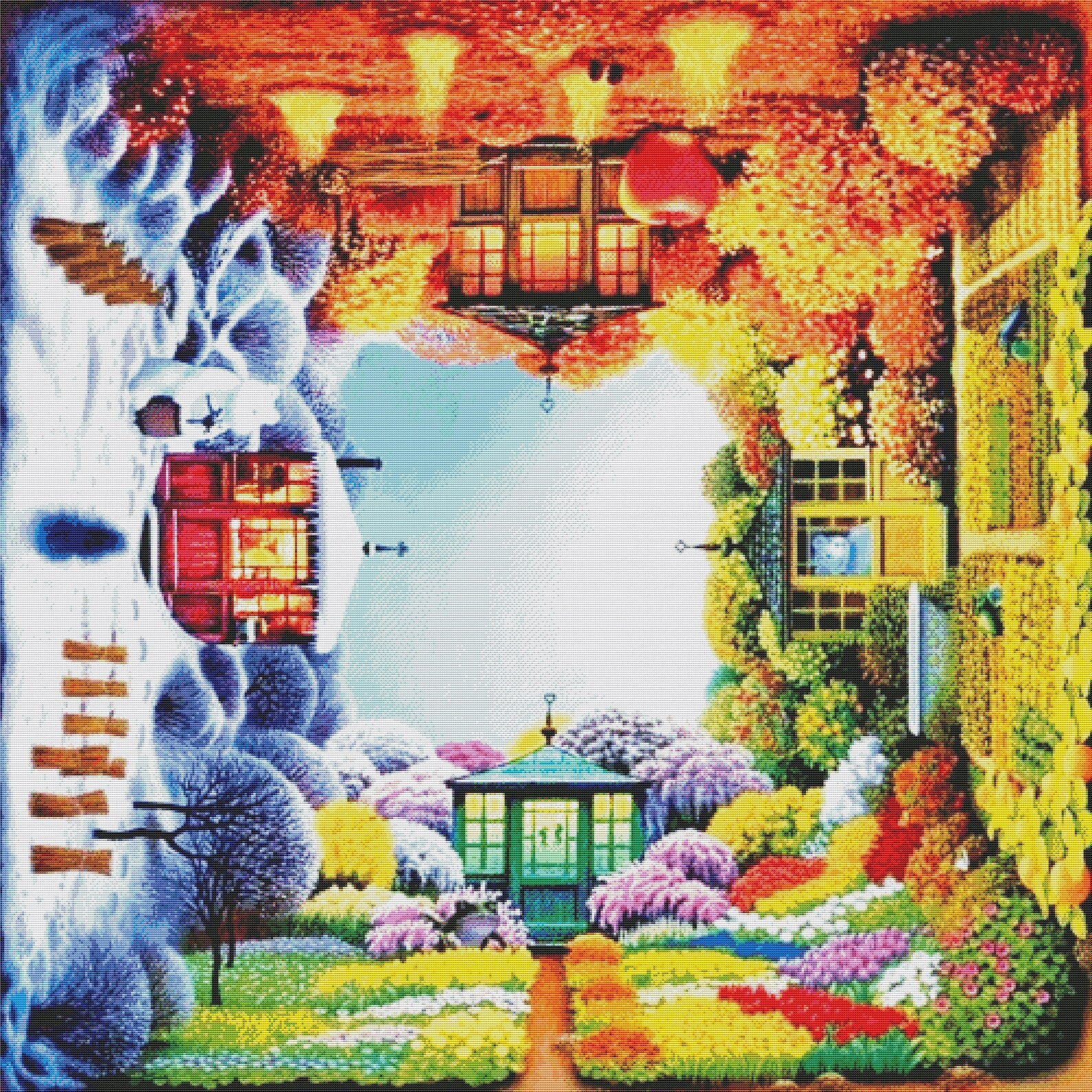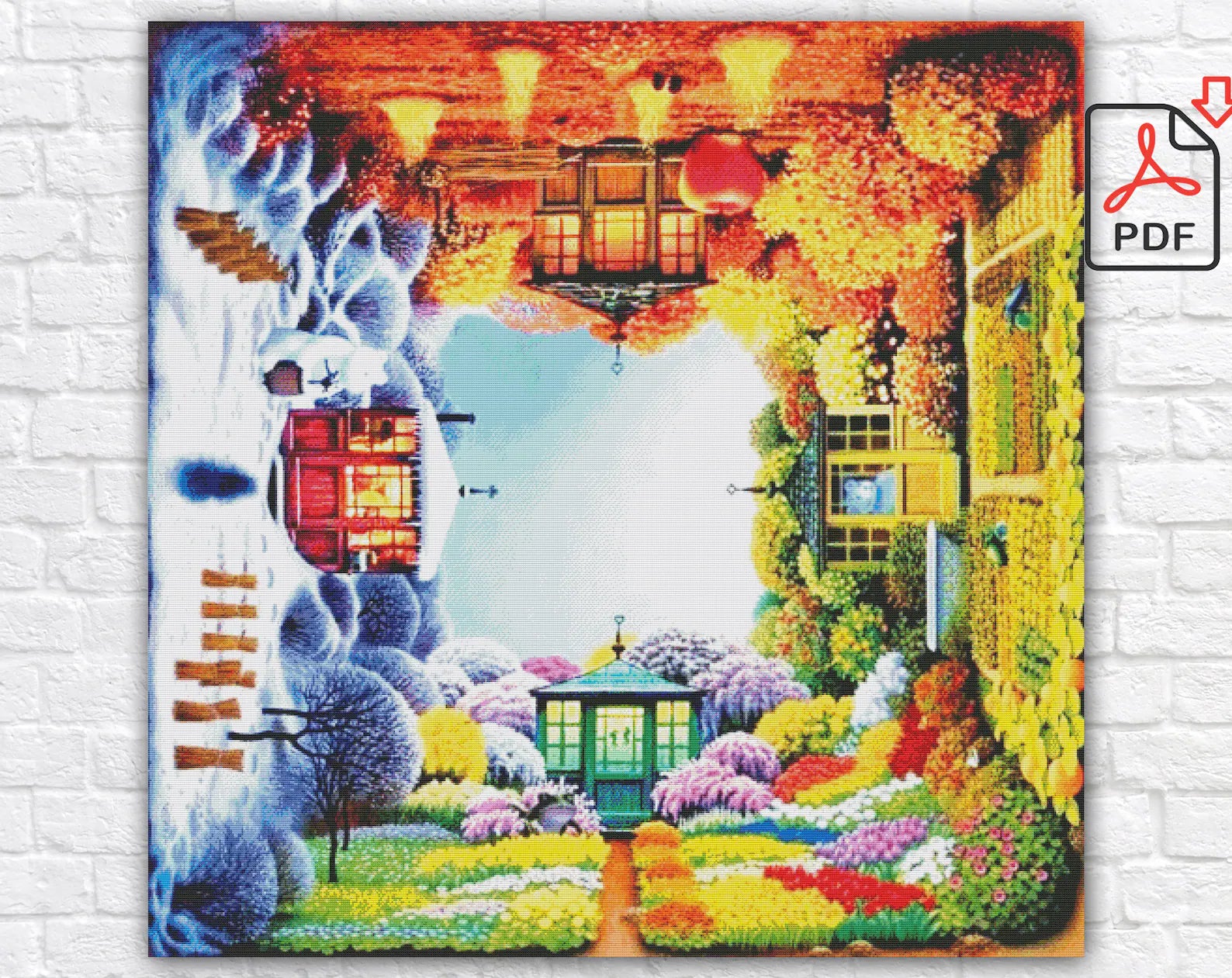 Seasons Cross Stitch Pattern in PDF for Instant Download.