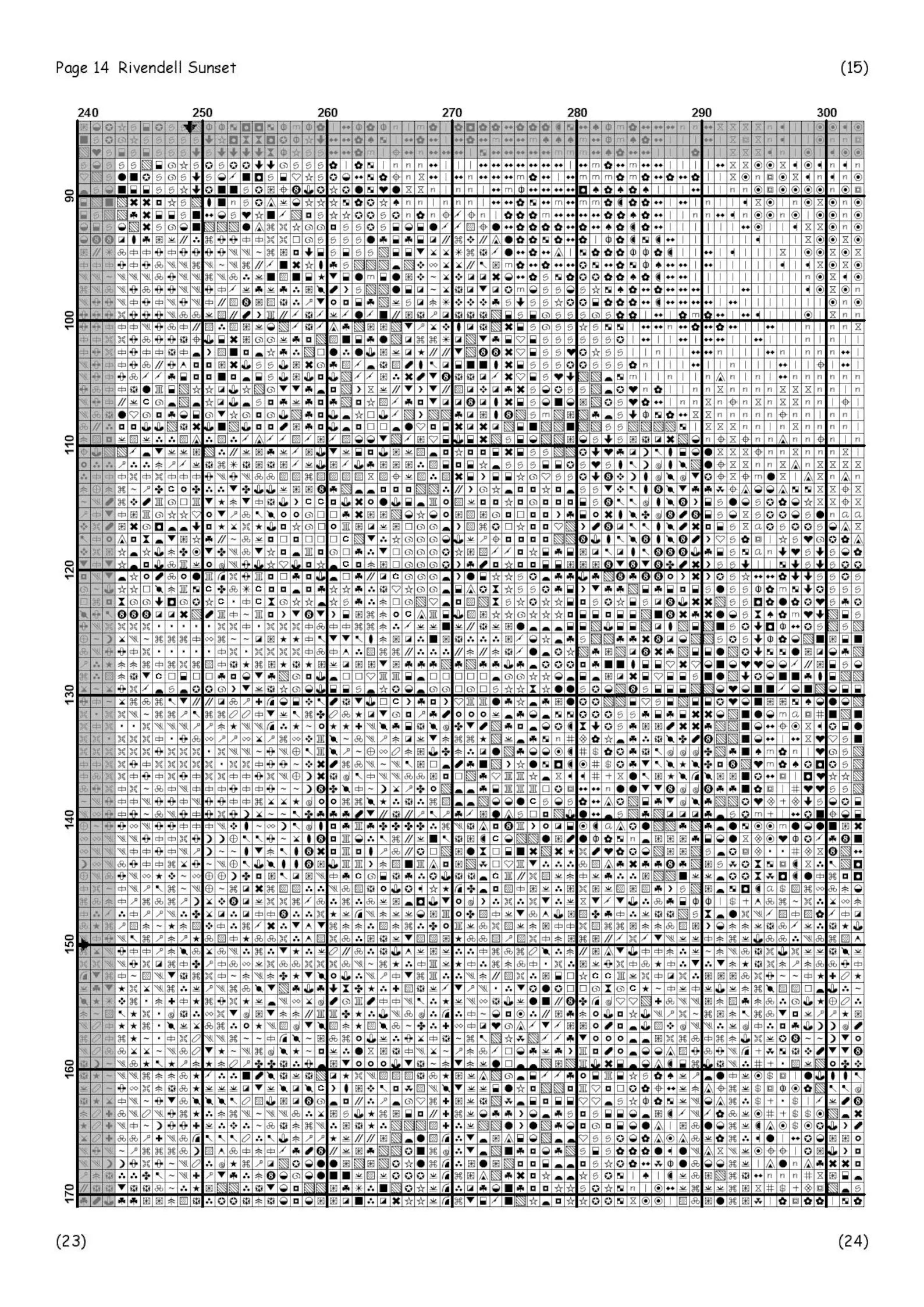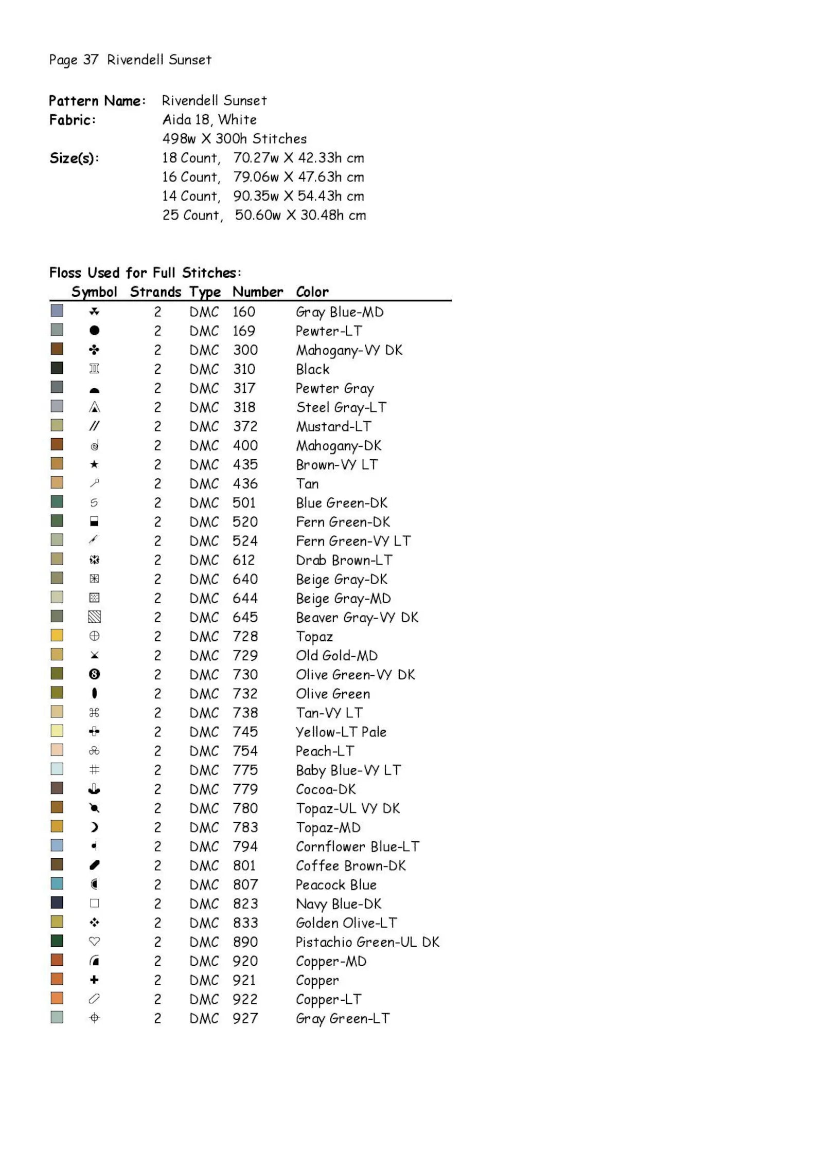 PDF Cross Stitch Pattern "Rivendell Sunset" DMC 88 Solid/Blended Colors 498w X 300h Stitches, Size on 18th Count 71w X 43h cm (28w' X 17h')