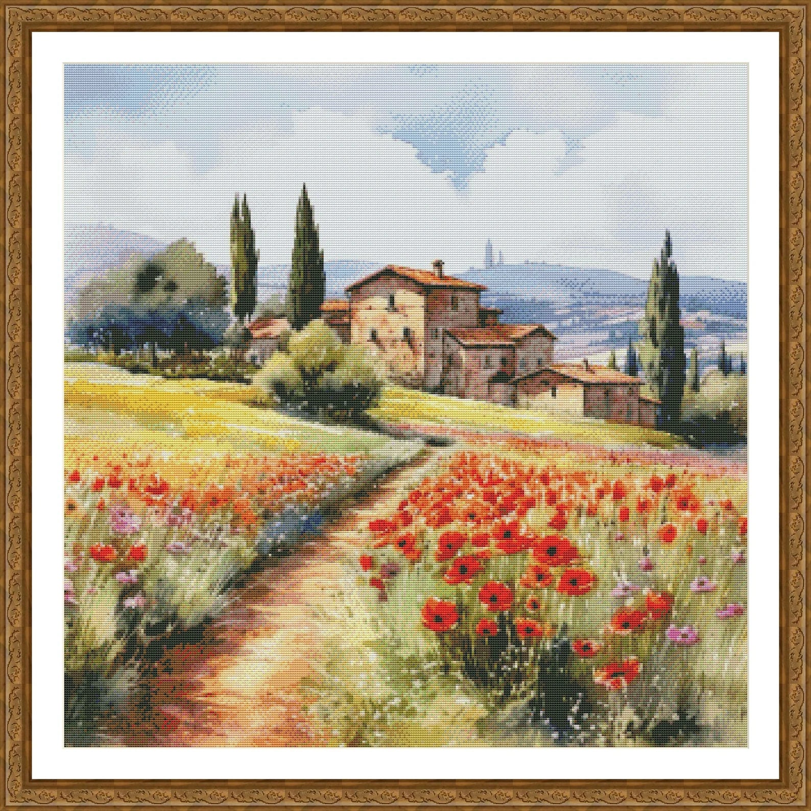 PDF Tuscany Field Counted Cross Stitch Pattern, Landscape design, Instant Download Digital Format