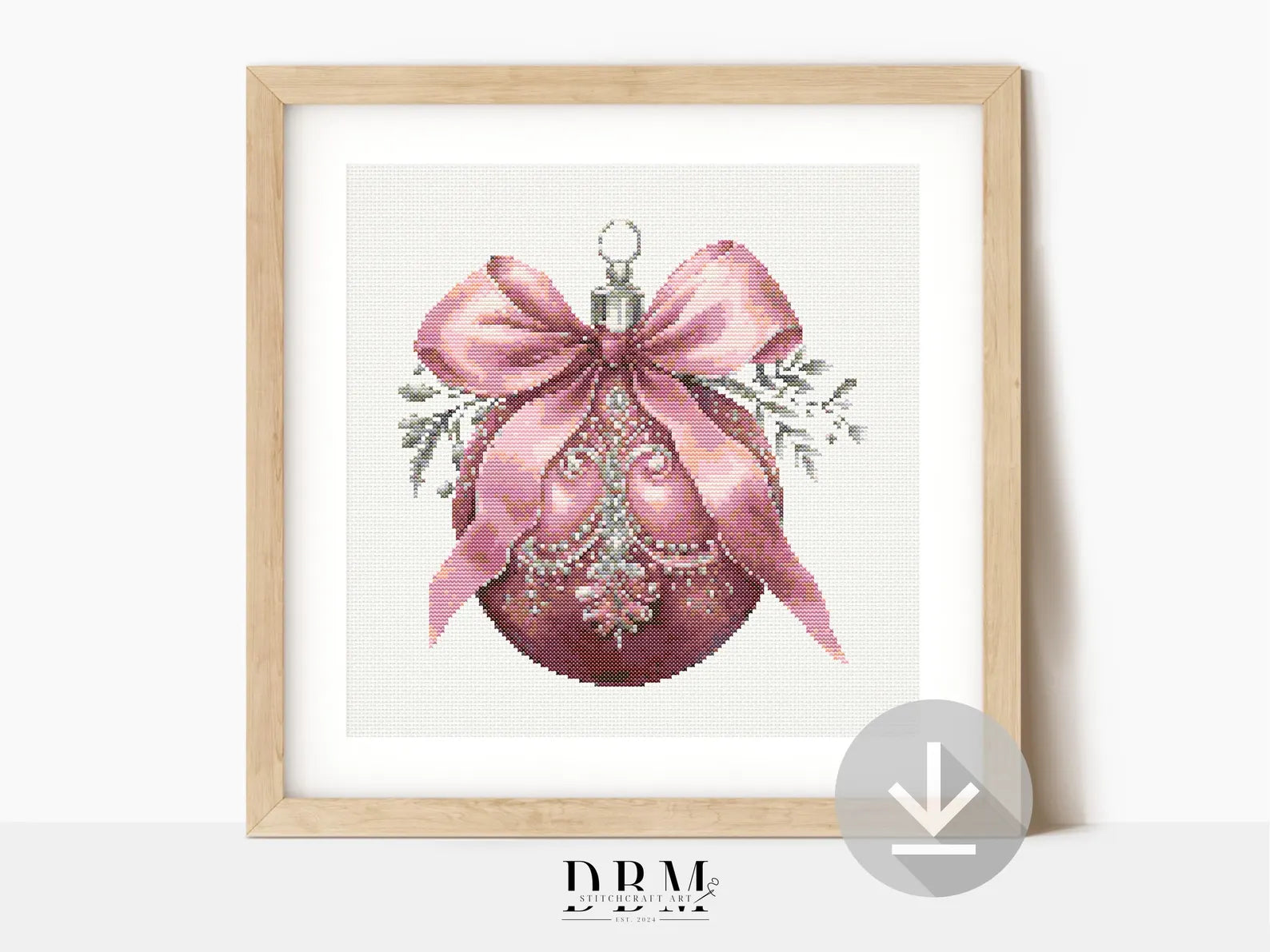 Pink Silver Bauble Cross Stitch Pattern | PDF Guide | Digital Download | Christmas Cross Stitch Wall Art | Intermediate Cross Stitch