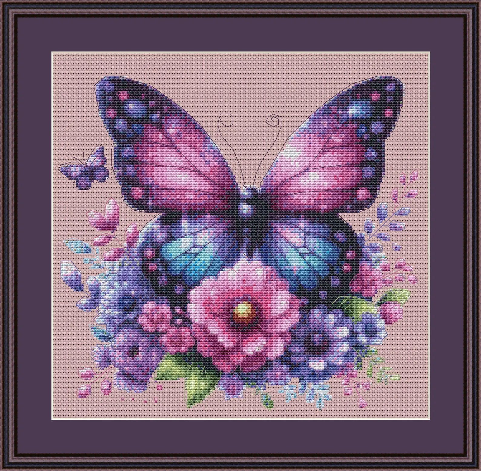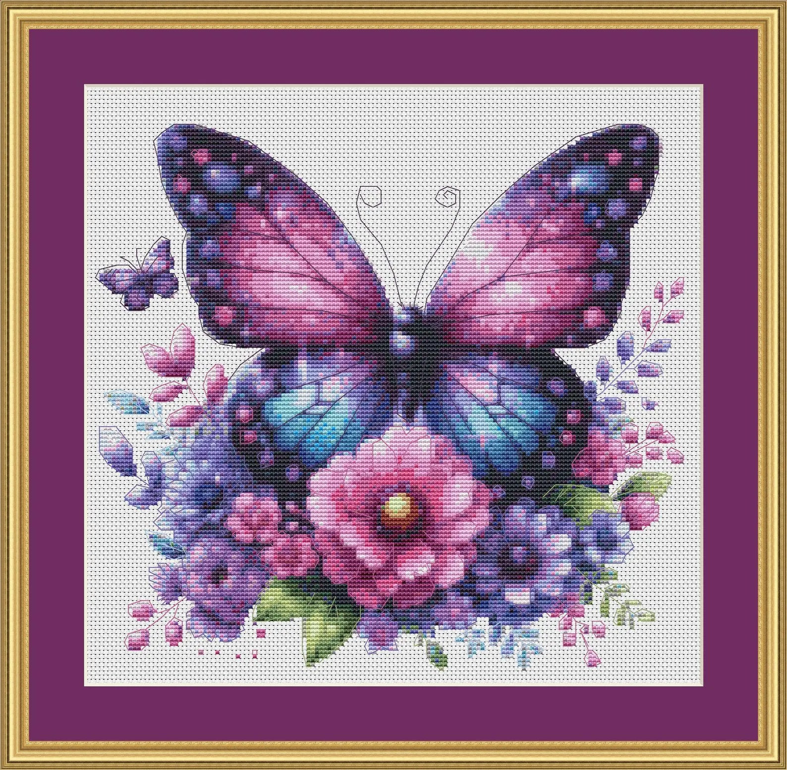 Purple Butterfly - Counted Cross Stitch Patterns - Printable Chart PDF Format Needlework Embroidery Crafts DIY DMC color