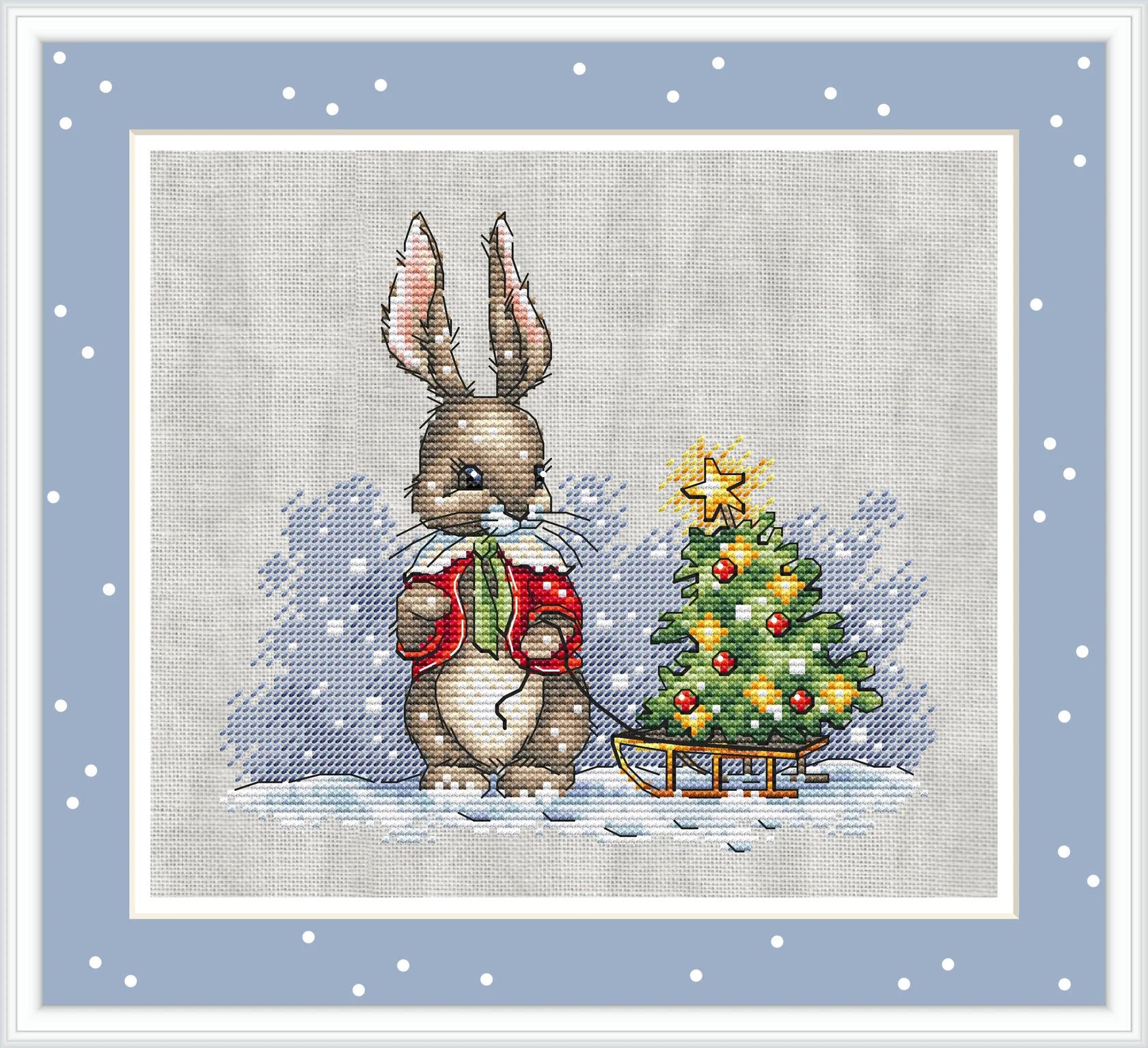 Rabbit and Christmas Tree Cross Stitch Pattern