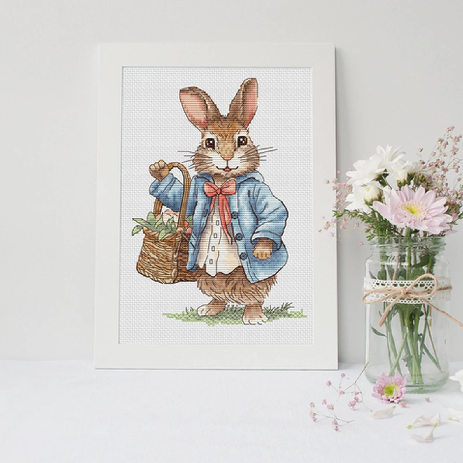 Decorate your space with the charming Rabbit boy Cross Stitch Pattern featuring a bunny holding a basket . This detailed design is perfect for adding a touch of spring and summer decor to your home. With this Instant Download PDF Digital File, you can start stitching right away and bring this adorable design to life in no time. Create a lovely piece of art that will brighten up any room with this beautiful pattern.