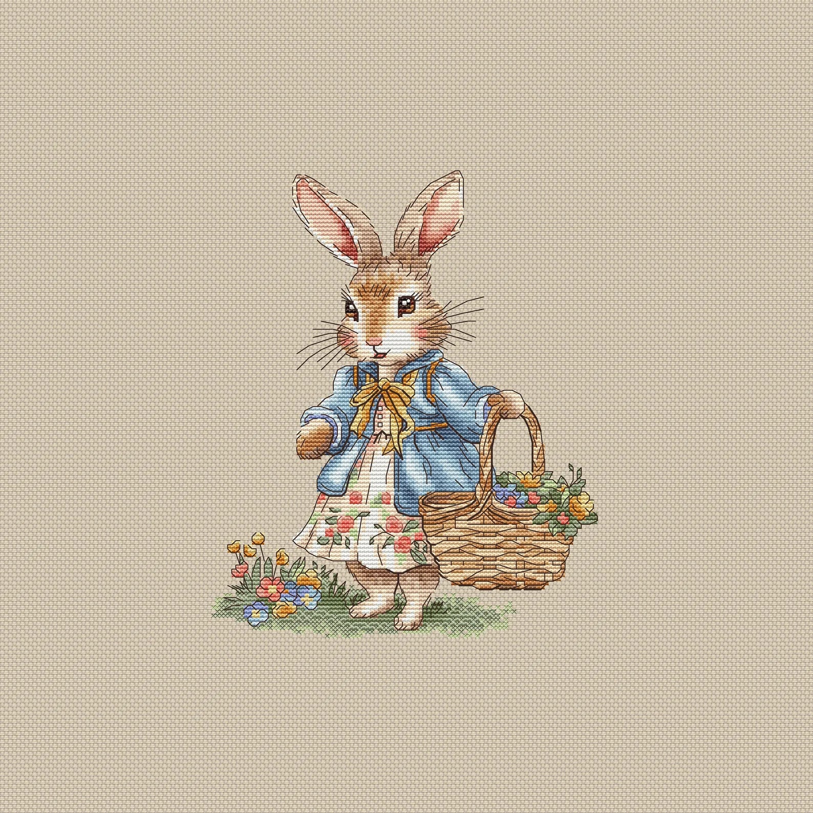Decorate your space with the charming Rabbit Girl and Boy Cross Stitch Pattern featuring a bunny holding a basket of flowers. This detailed design is perfect for adding a touch of spring and summer decor to your home. With this Instant Download PDF Digital File, you can start stitching right away and bring this adorable design to life in no time. Create a lovely piece of art that will brighten up any room with this beautiful pattern.