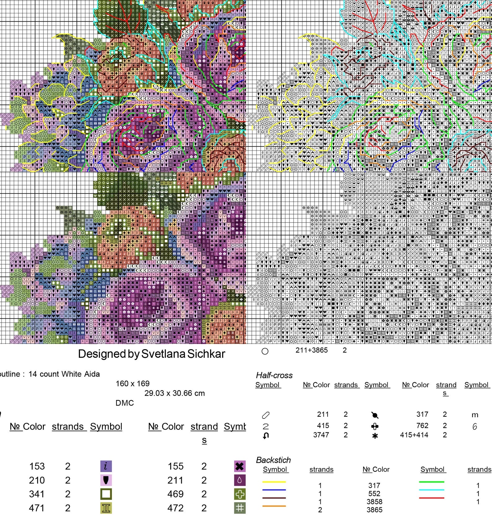 - Finished size: 160х169 crosses (for canvas Aida 14 is 29х31 cm 11.4x12.2 in)