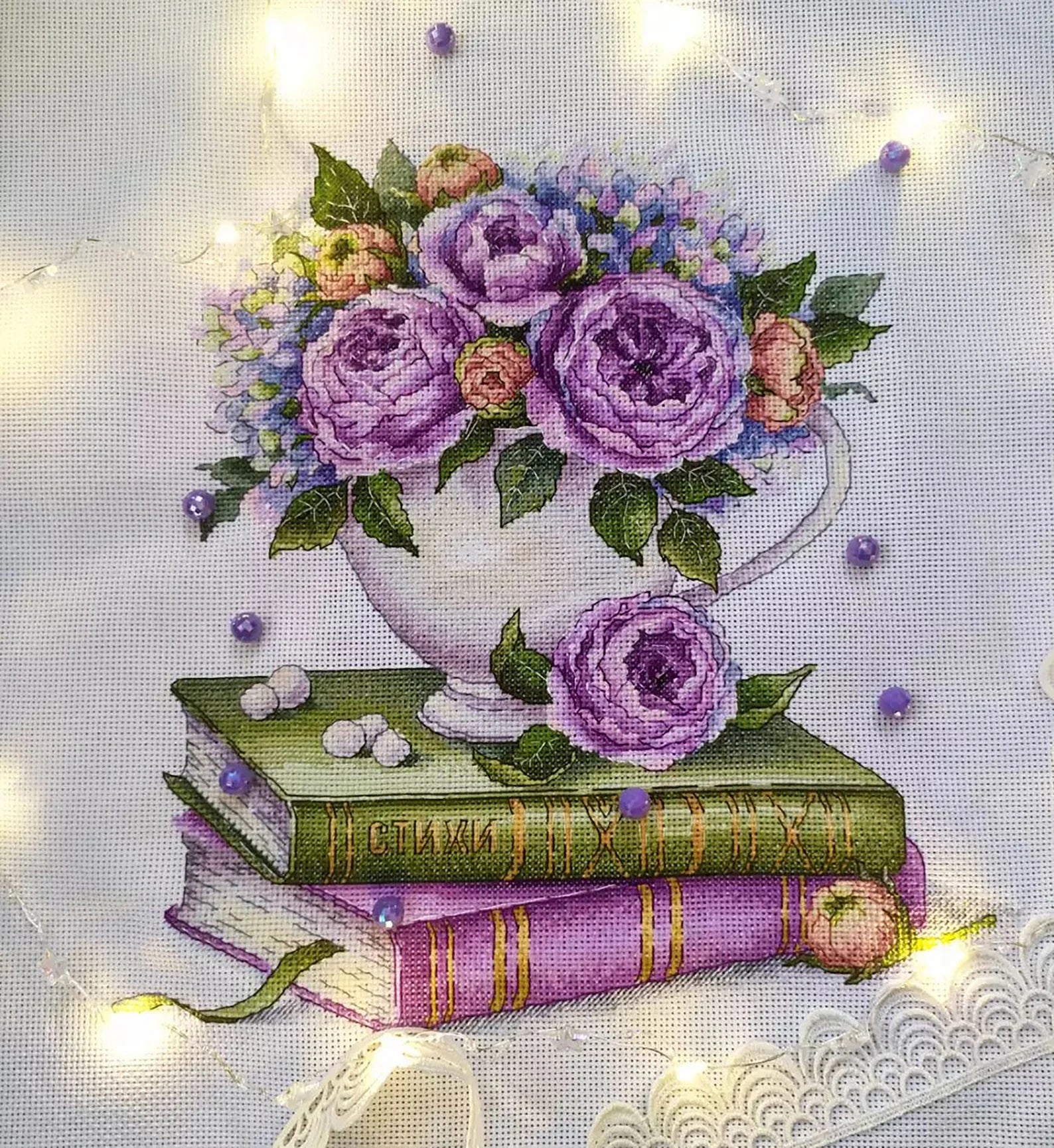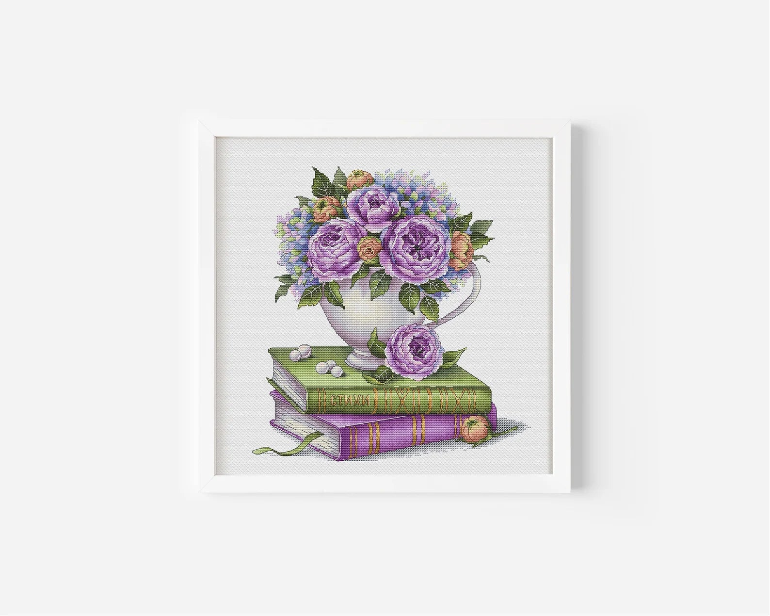 Rose Cross Stitch Pattern PDF, Book Cross Stitch Pattern, Flower Counted Cross Stitch Instant Download, Floral Bouquet, Home Decor Wall Art