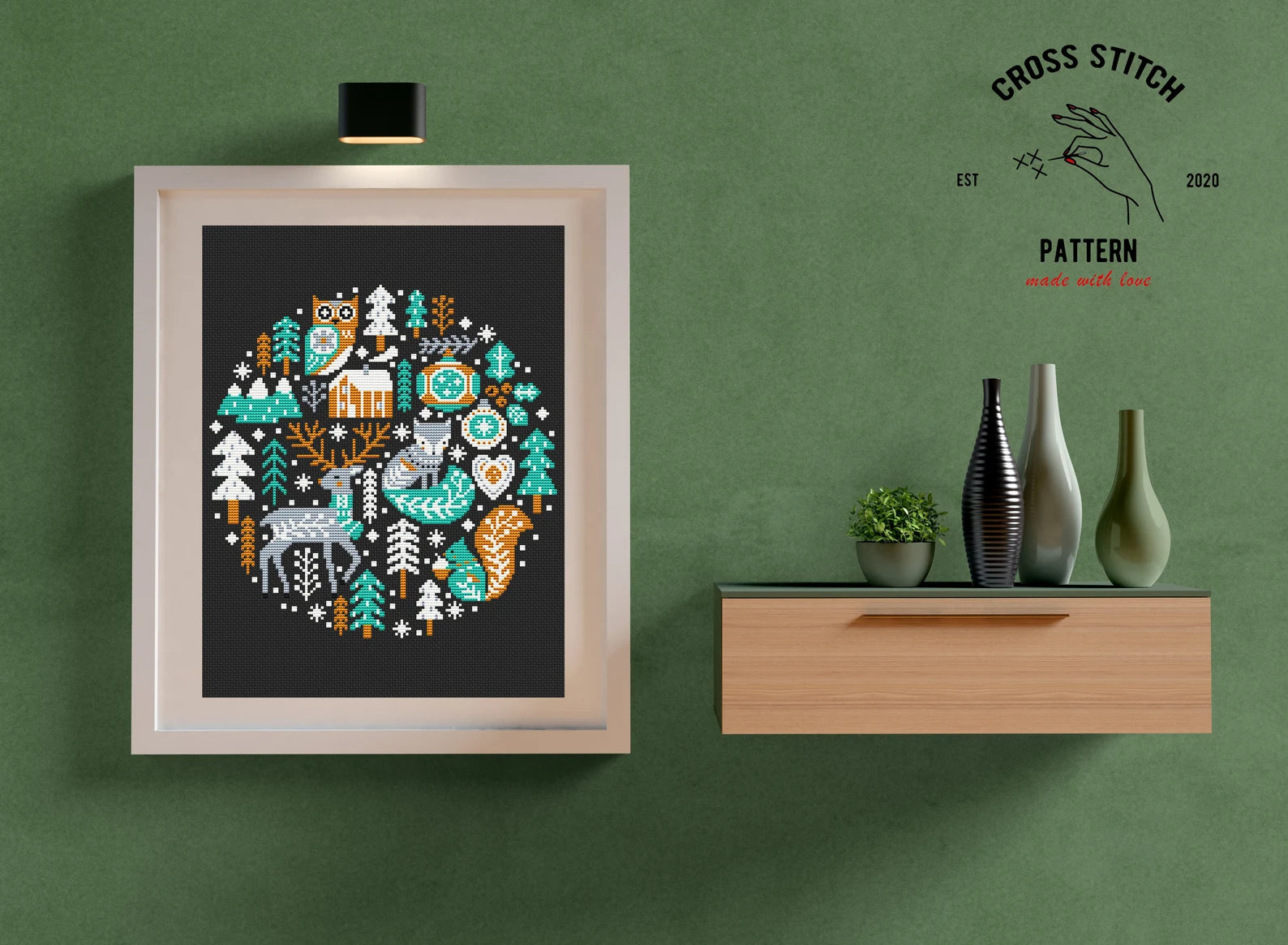 Scandinavian Christmas ornament cross stitch pattern Woodland animals Christmas decorations embroidery Nordic theme chart Holiday gift