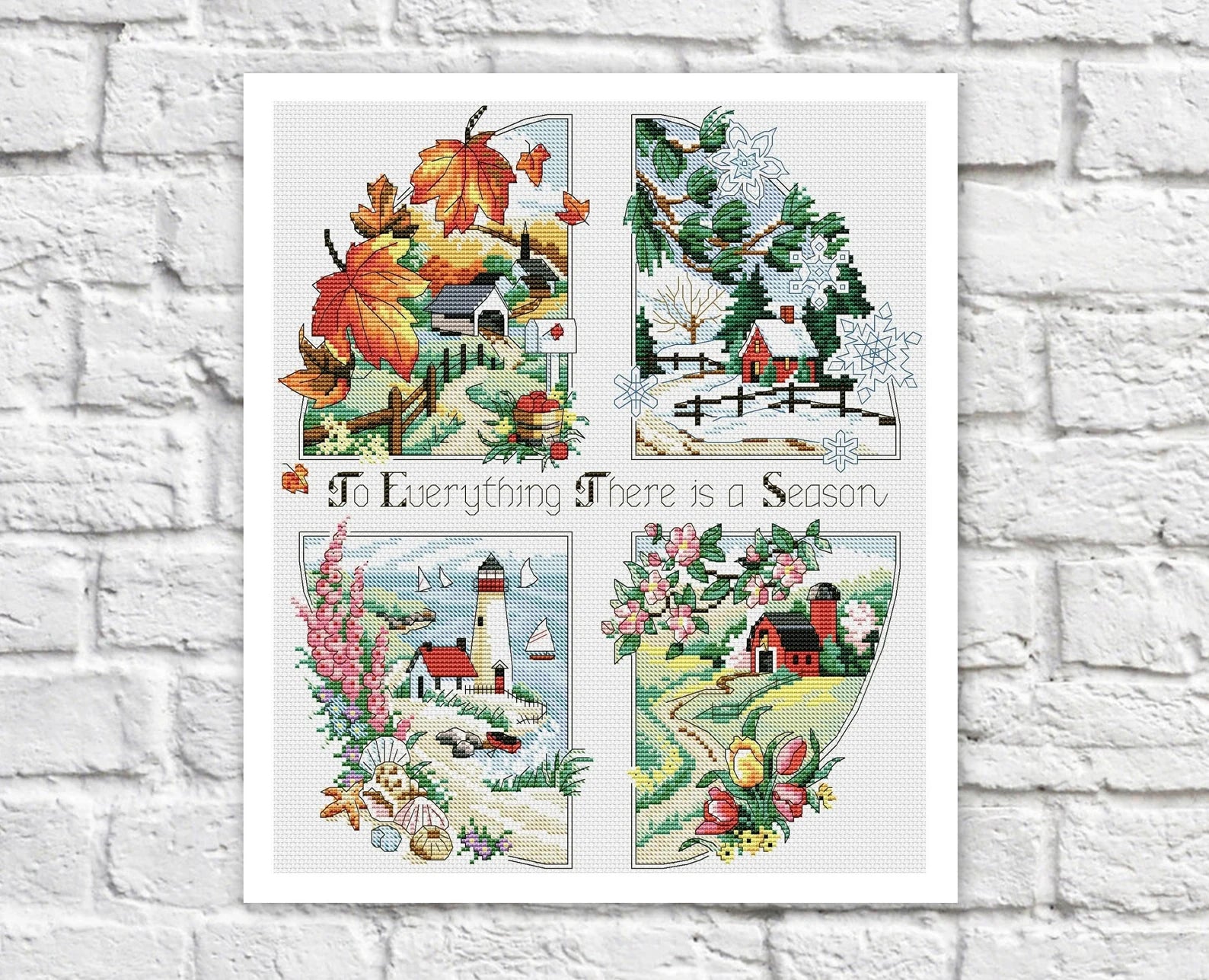 Seasons Cross Stitch Pattern Colorful Art DIY X-stitch Chart Needlepoint Pattern Embroidery Chart Printable Instant Download PDF Design