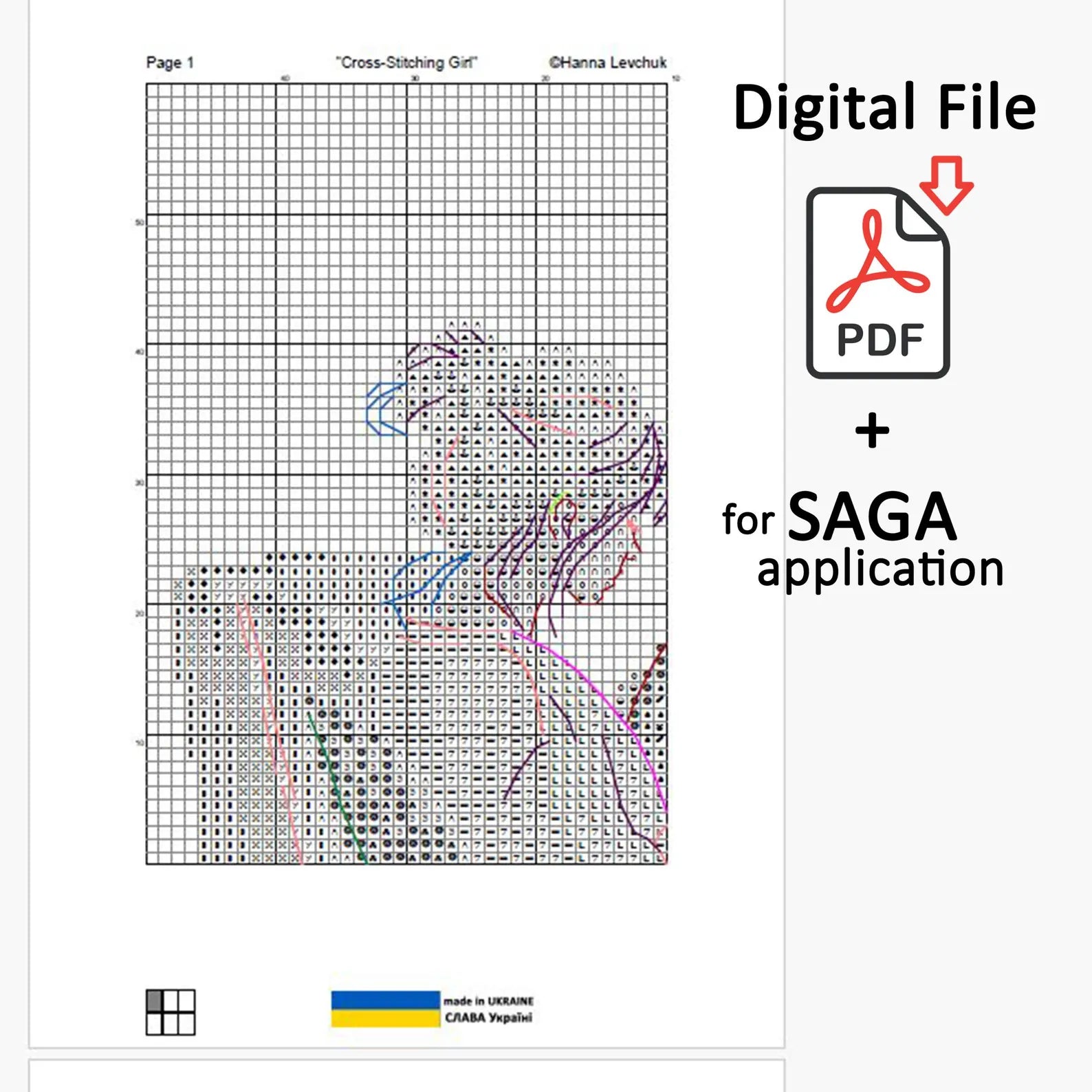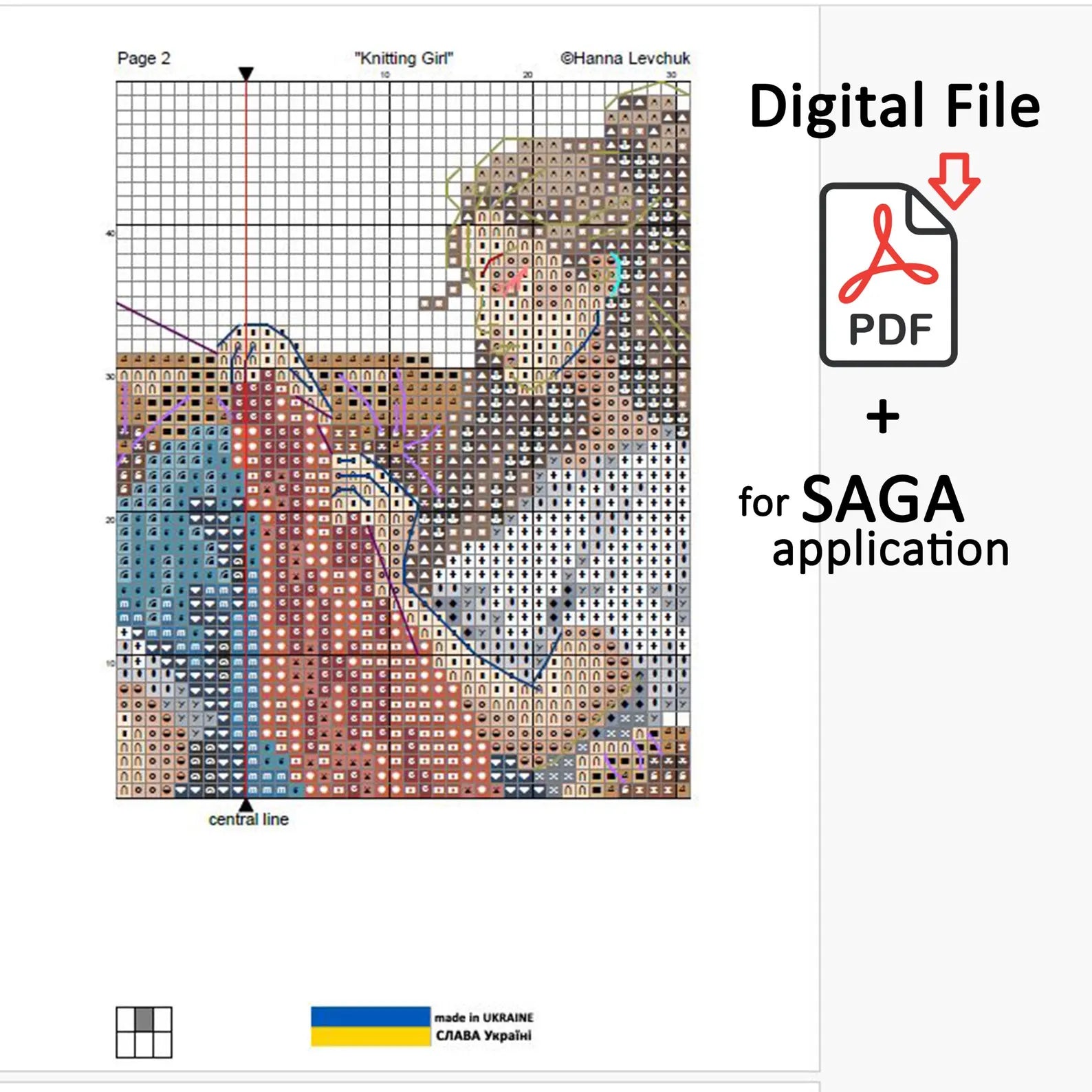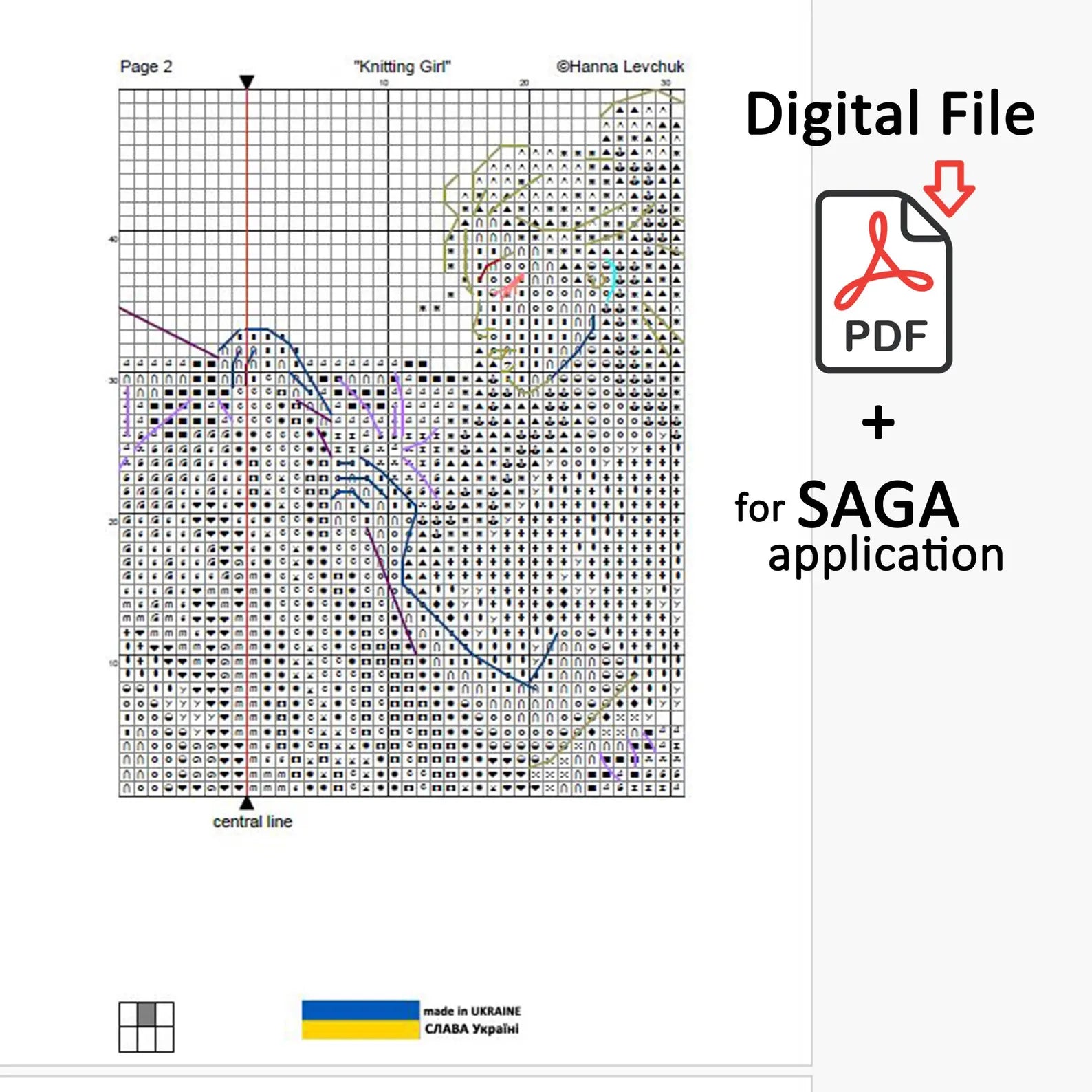 Set Of Two Cross Stitch and Knitting Girls Cross Stitch Pattern PDF, cross stitch patterns, point de croix, punto de cruz