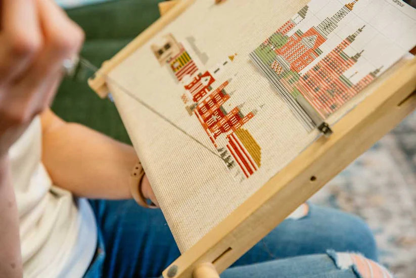 Bring more comfort and control to your larger cross stitch or embroidery projects—with a stand that holds steady while your creativity flows.