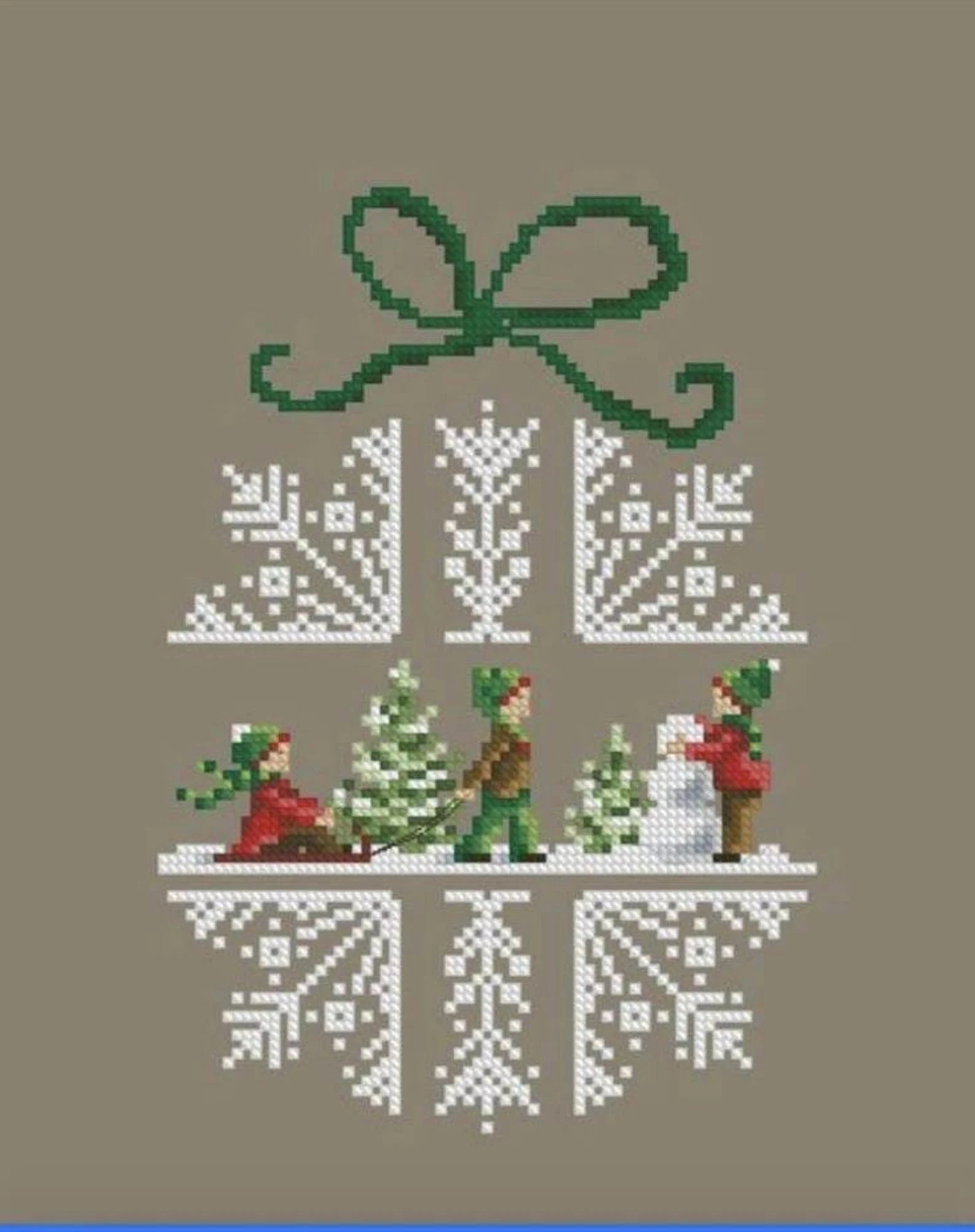 Snowflake cross stitch pattern, children in snow cross stitch pattern, new year cross stitch, new year toy cross stitch