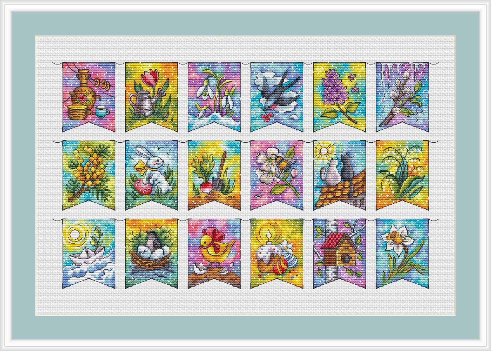 Spring Flags Cross Stitch Pattern