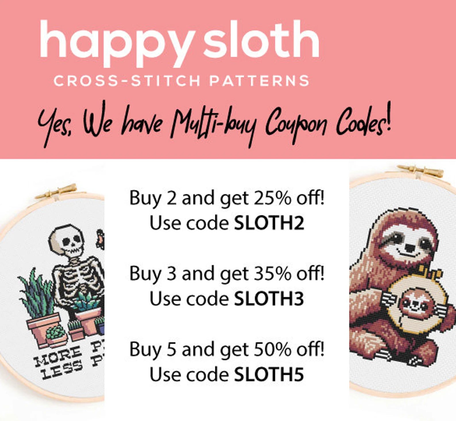 This is an original cross stitch pattern by Happy Sloth. We own the license to this artwork. Please do not reproduce the pattern or use the artwork commercially. Thank you for understanding.