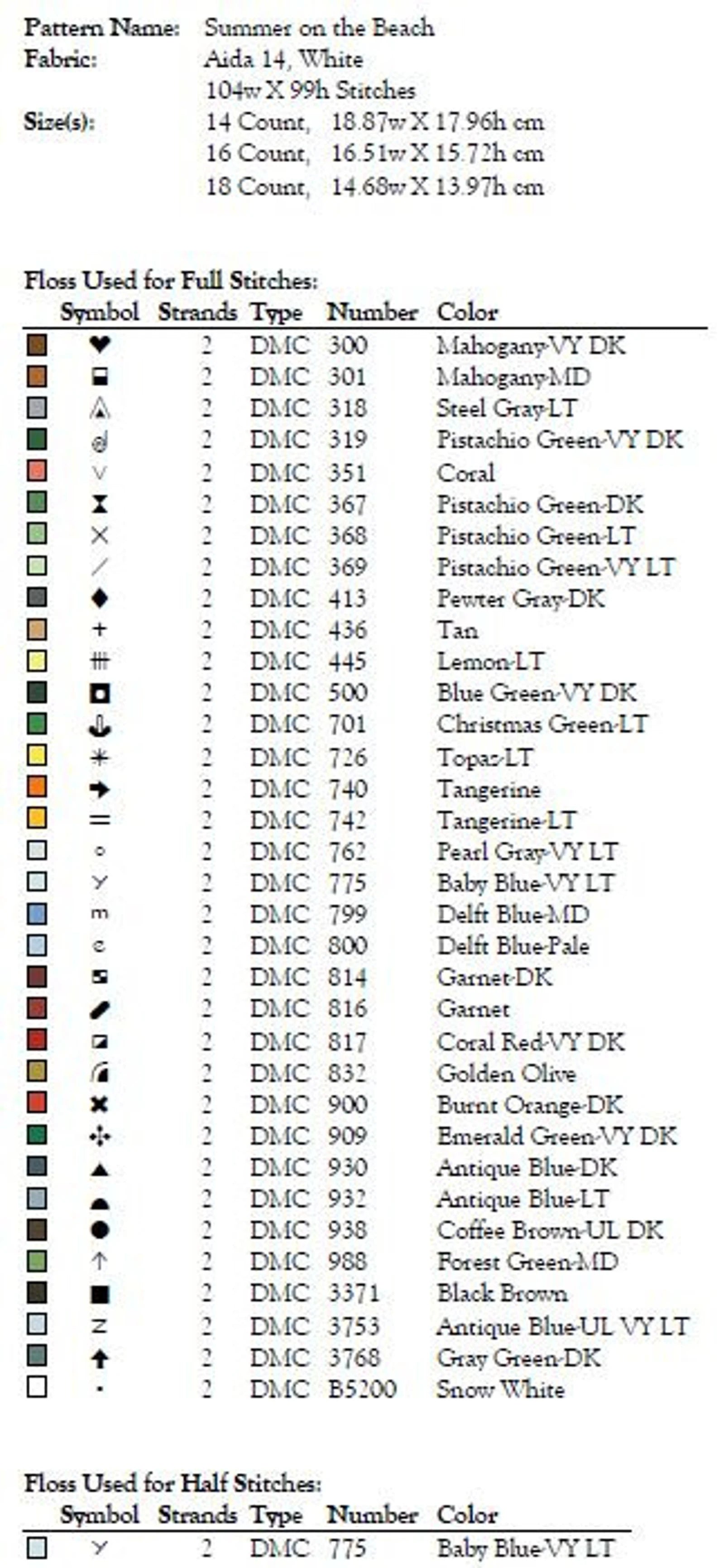 - A full color chart - colored blocks with symbols
