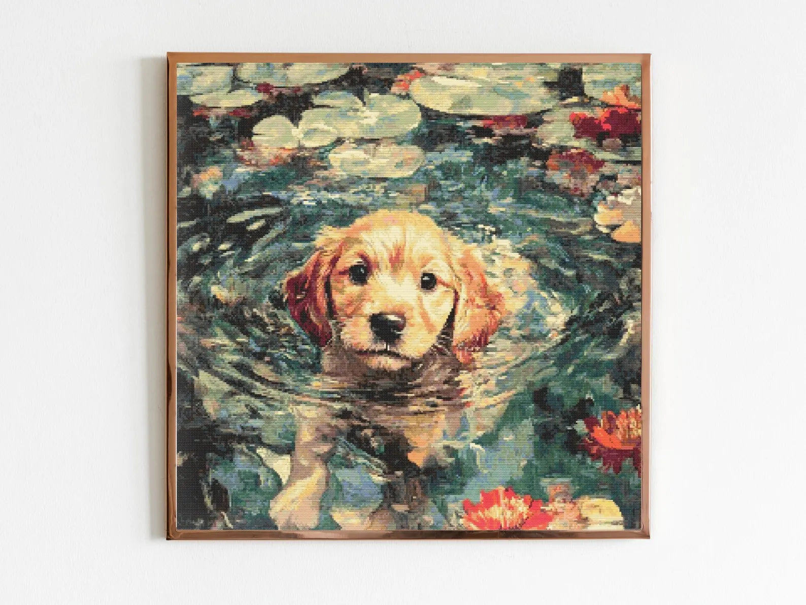 Swimming Labrador Puppy Cross Stitch Pattern Sewing Embroidery Animal Nursery Artwork Scandi Minimal Pet Gift Keeper Monet Pup A