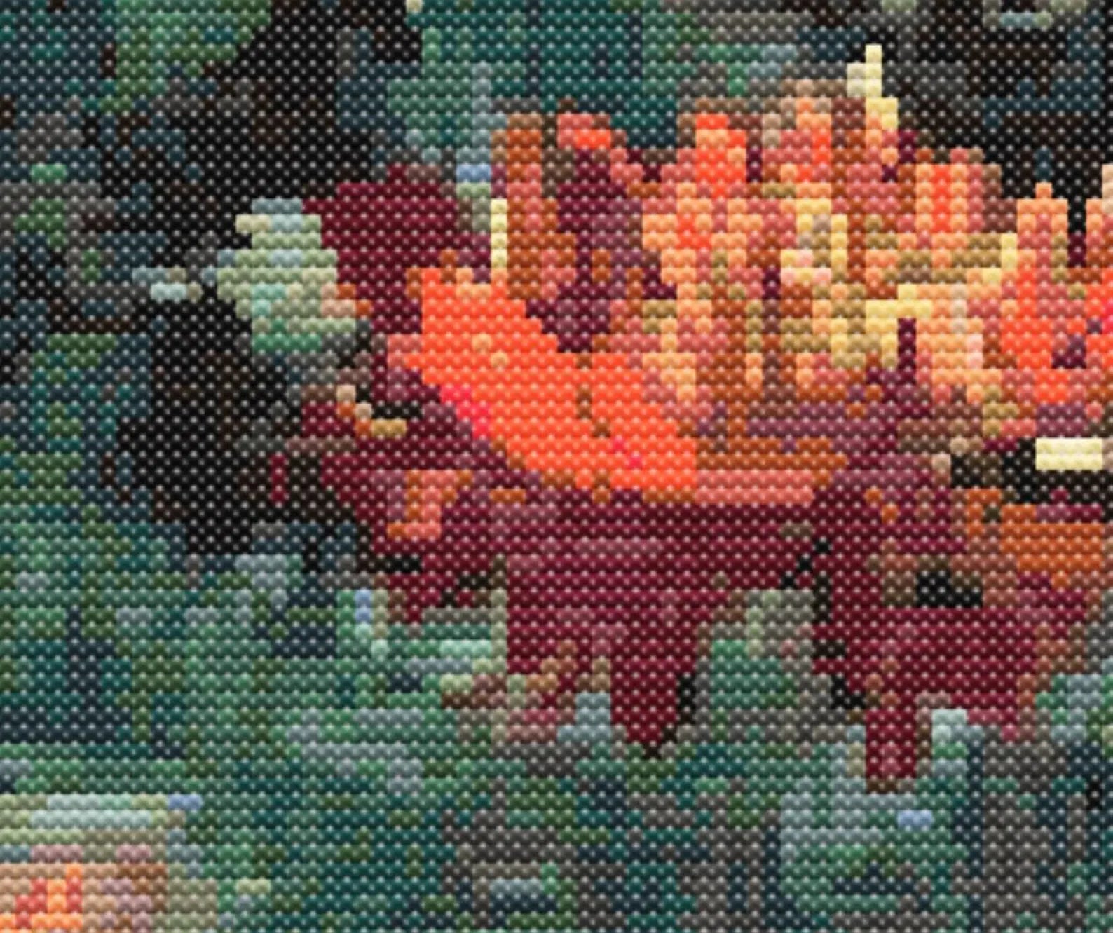Includes corresponding DMC thread key and features up to 60 colours to give the piece a vibrant range of colour.