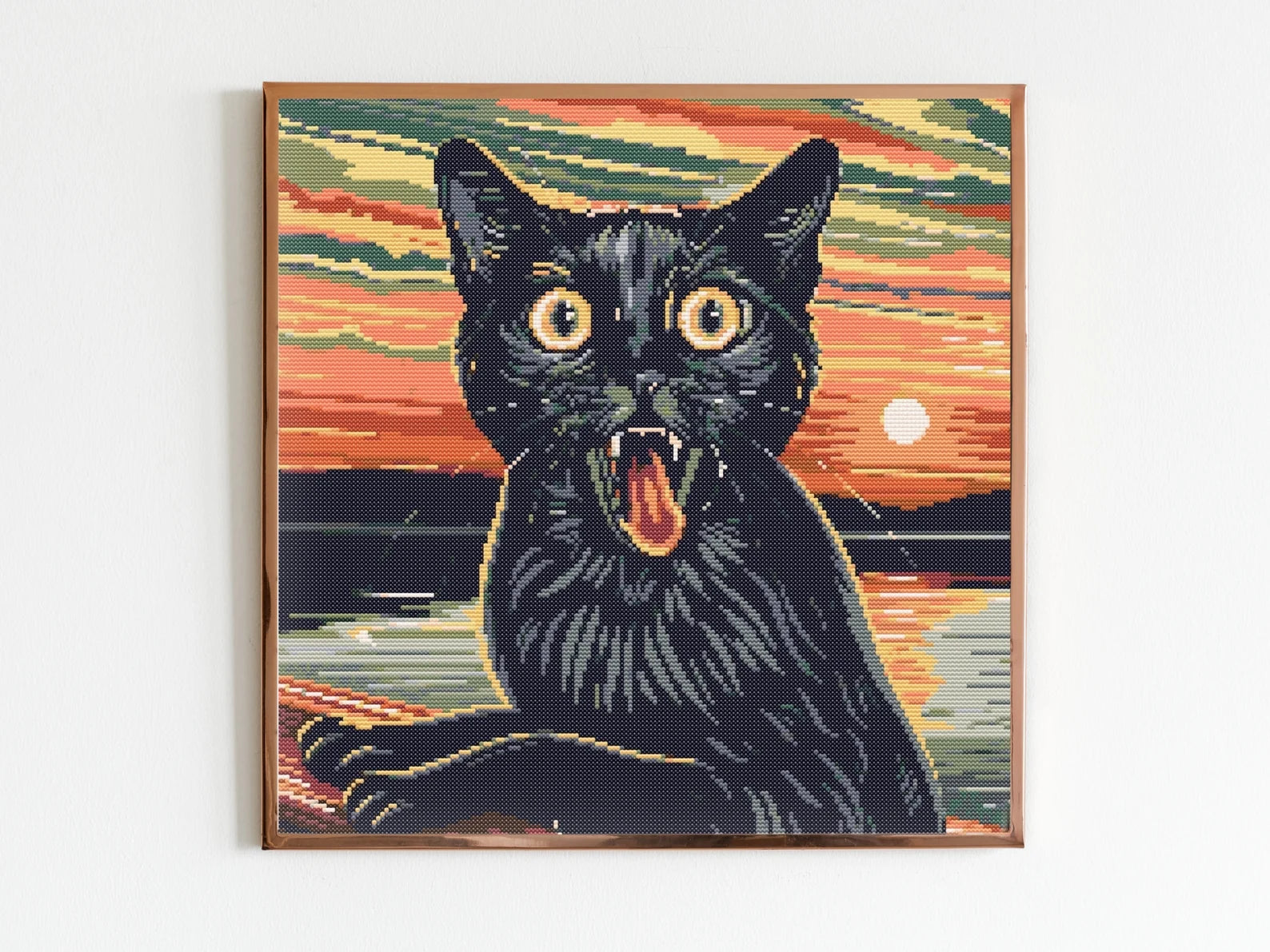 The Cat Scream Cross Stitch Sewing Modern Embroidery Pattern Instant DMC Download Funny Snarky Cute Beginner Van Gogh Edvard Monk Kitten
