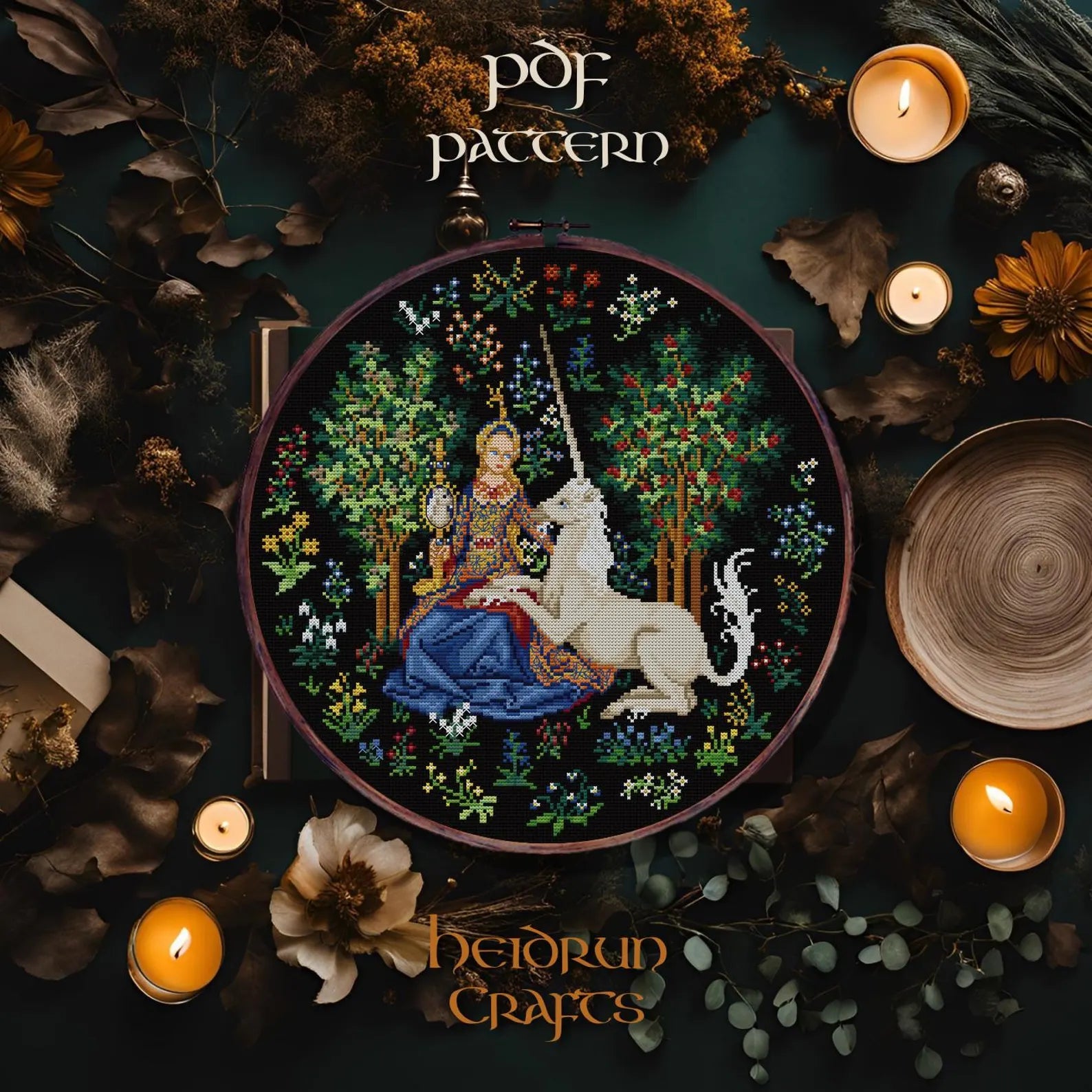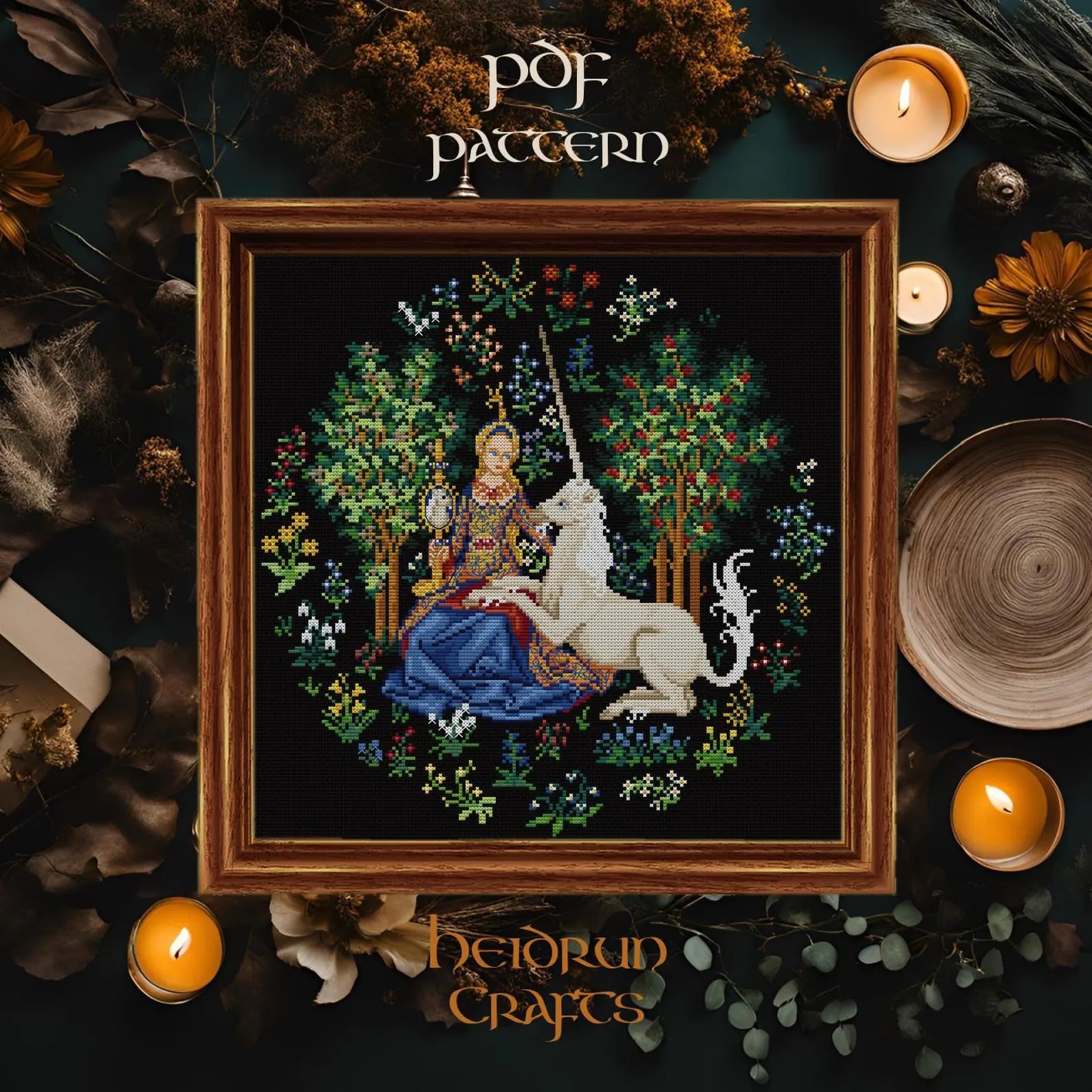 The Lady and the Unicorn Cross Stitch Pattern PDF – Medieval Tapestry Embroidery, Castlecore Decor, Fantasy Needlework, Digital Download