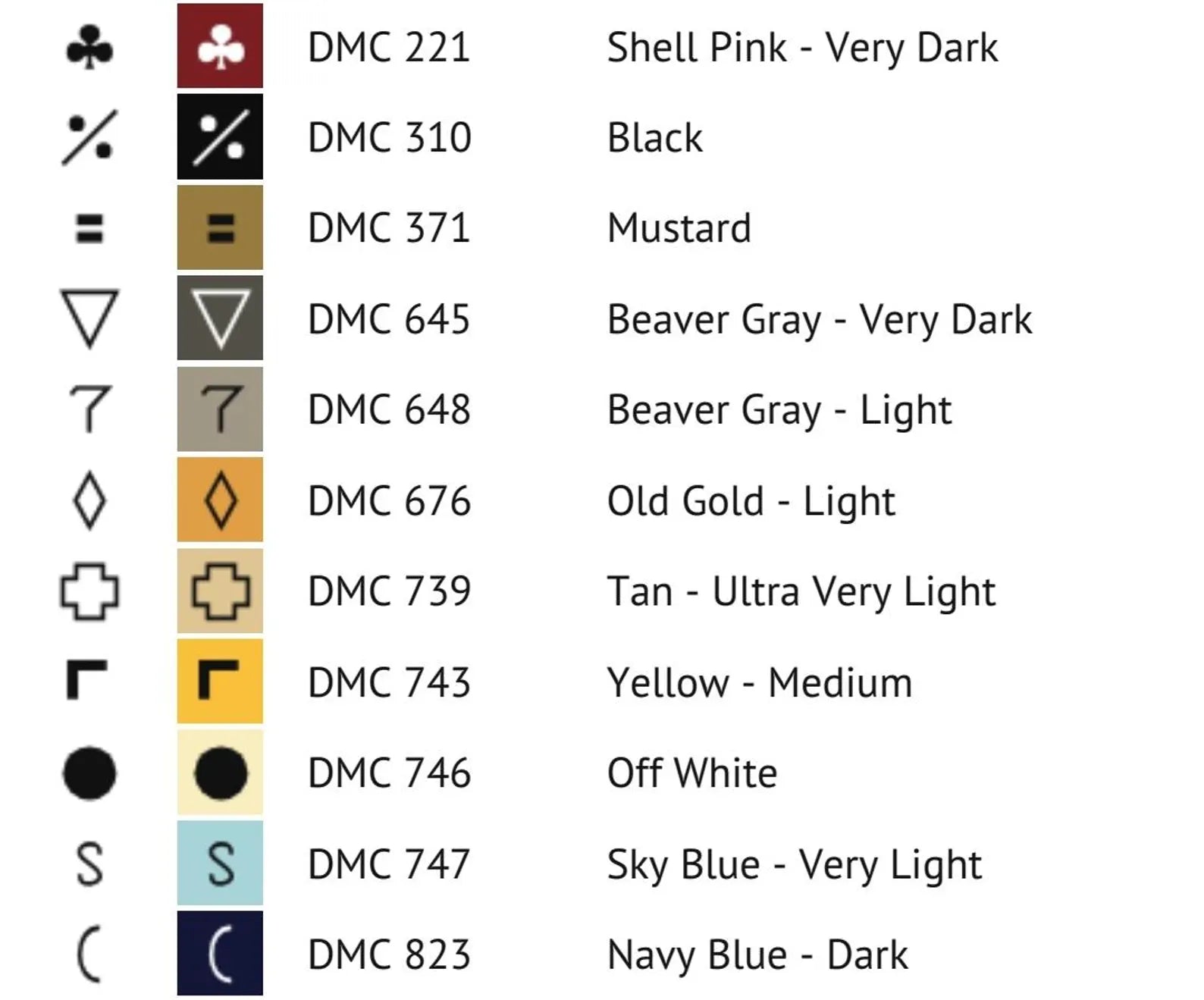 Please note all patterns include background DMC colour as a reference only. You can save on stitches by choosing appropriately coloured Aida.