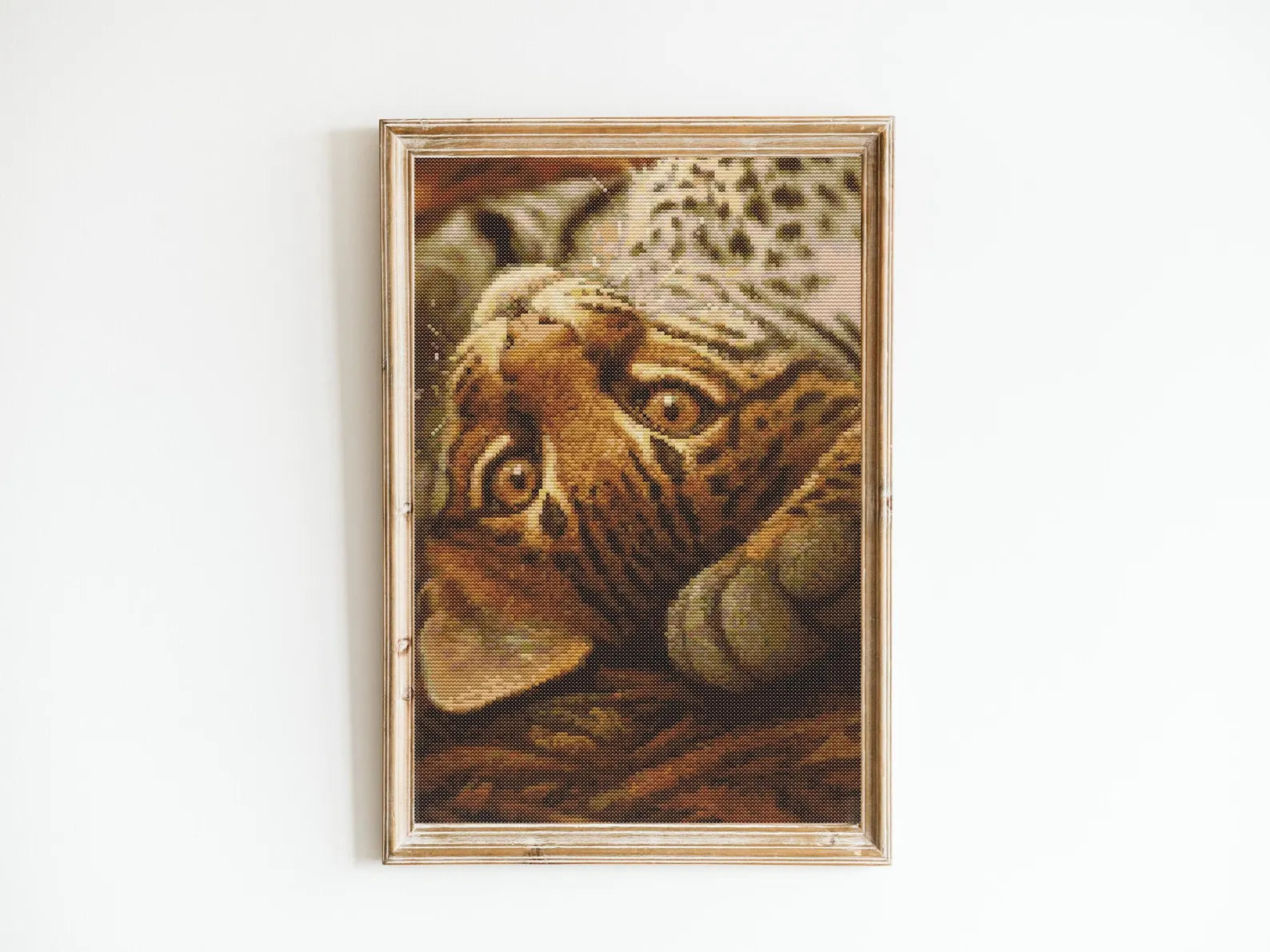 Cute Tiger artwork provided as an easy to follow cross stitch pattern and is provided as an instant digital PDF download.