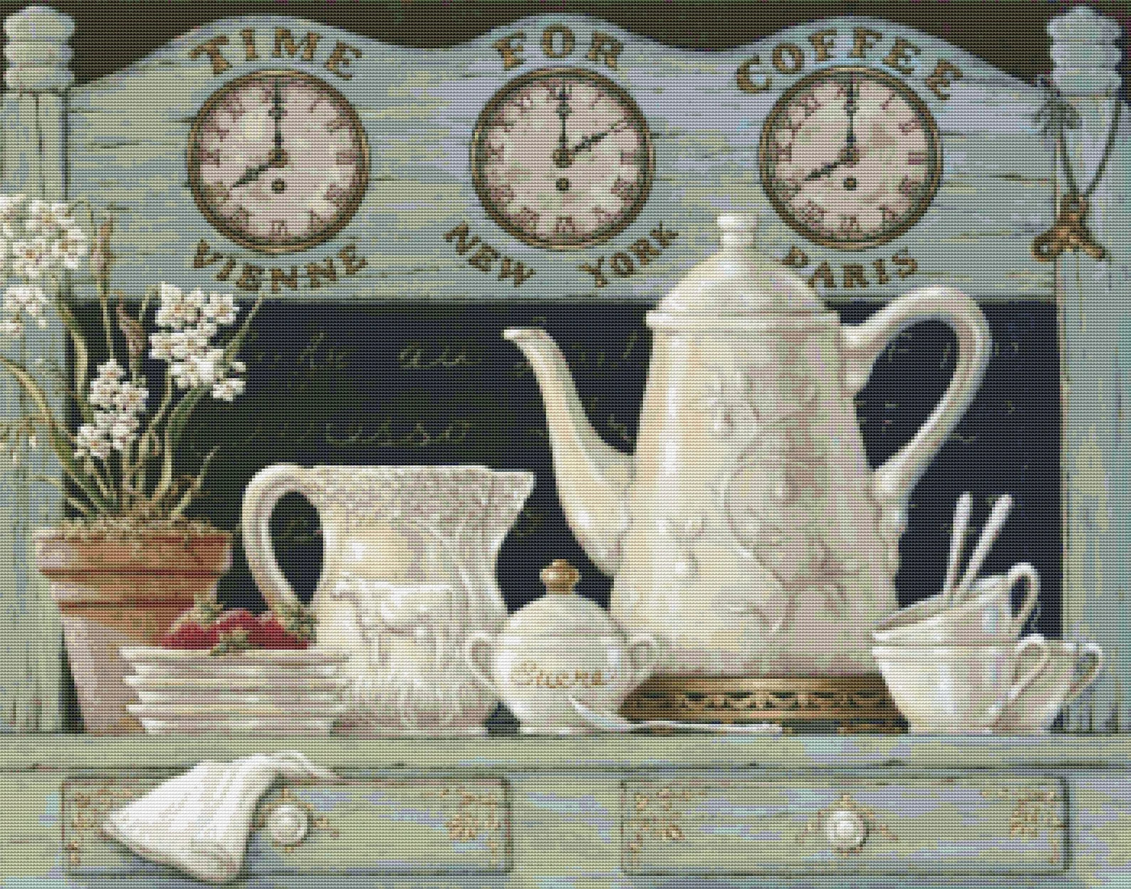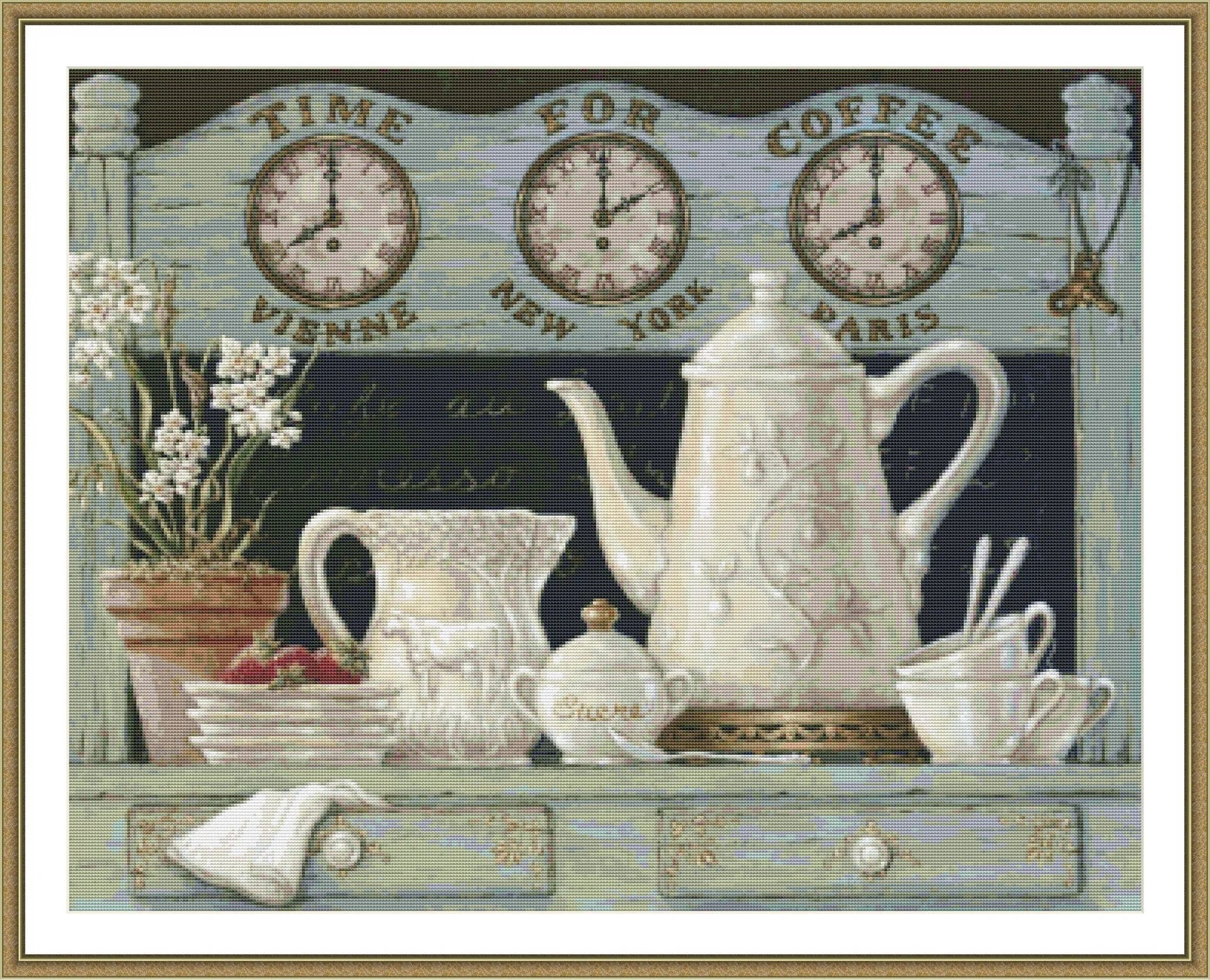 Time for Coffee Still Life Cross Stitch Pattern Digital Pattern Decor Wild Flowers Pattern Bouquet Embroidery Needlepoint Chart Download