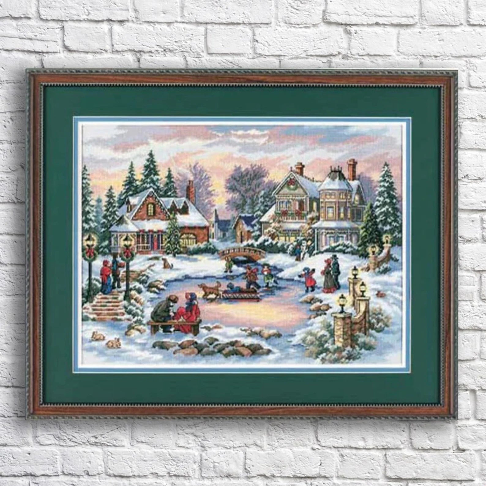 Treasure time Counted Cross Stitch Pattern Christmas Village Winter Landscape Hand Embroidery Needlepoint Chart Cottage Santa Pattern PDF