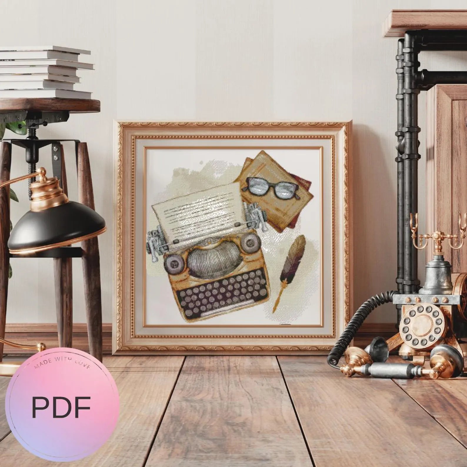 Typewriter Cross Stitch Pattern , Red Poppies , Famous Paintings X Stitch , Flower , Instant Download , Pdf , Art