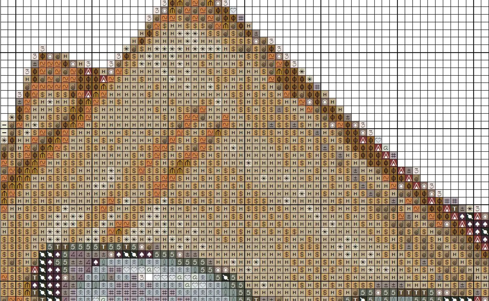 You'll get pattern in black and white symbols , colorblocks and symbols , and a list of the floss color.