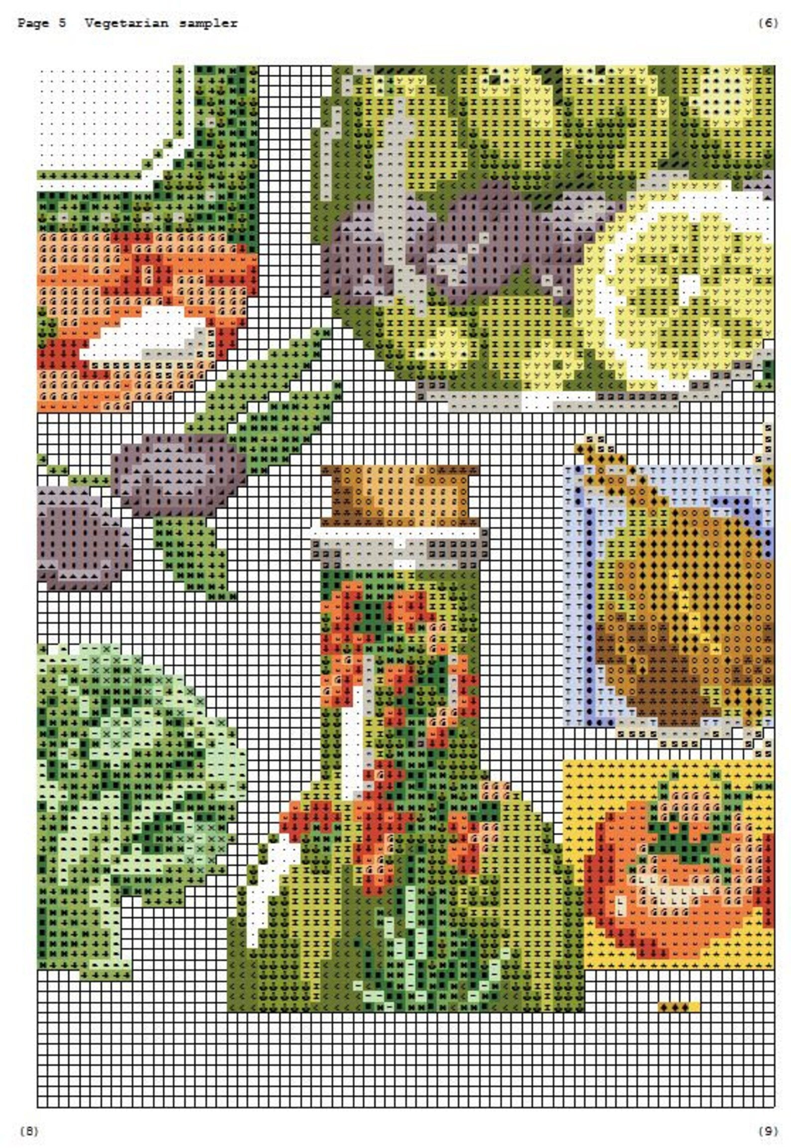 Vegetarian Sampler Cross Stitch Pattern Kitchen Decor Pattern Hand Embroidery Needlepoint Counted cross stitch Kitchen Still Life Vegetables
