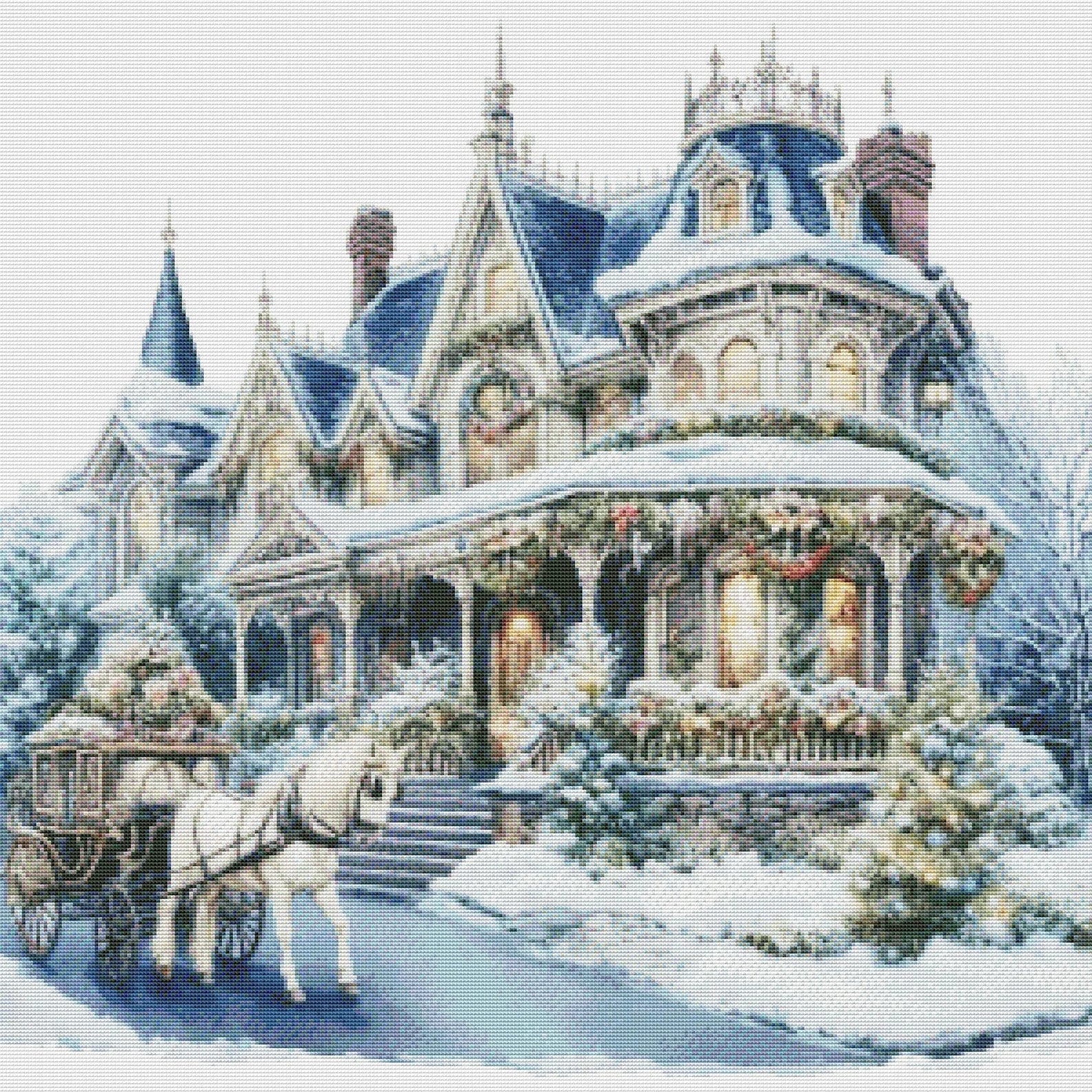 Victorian Christmas House Counted Cross Stitch Pattern Winter Landscape Holidays Hand Embroidery Needlepoint Chart Cottage PDF