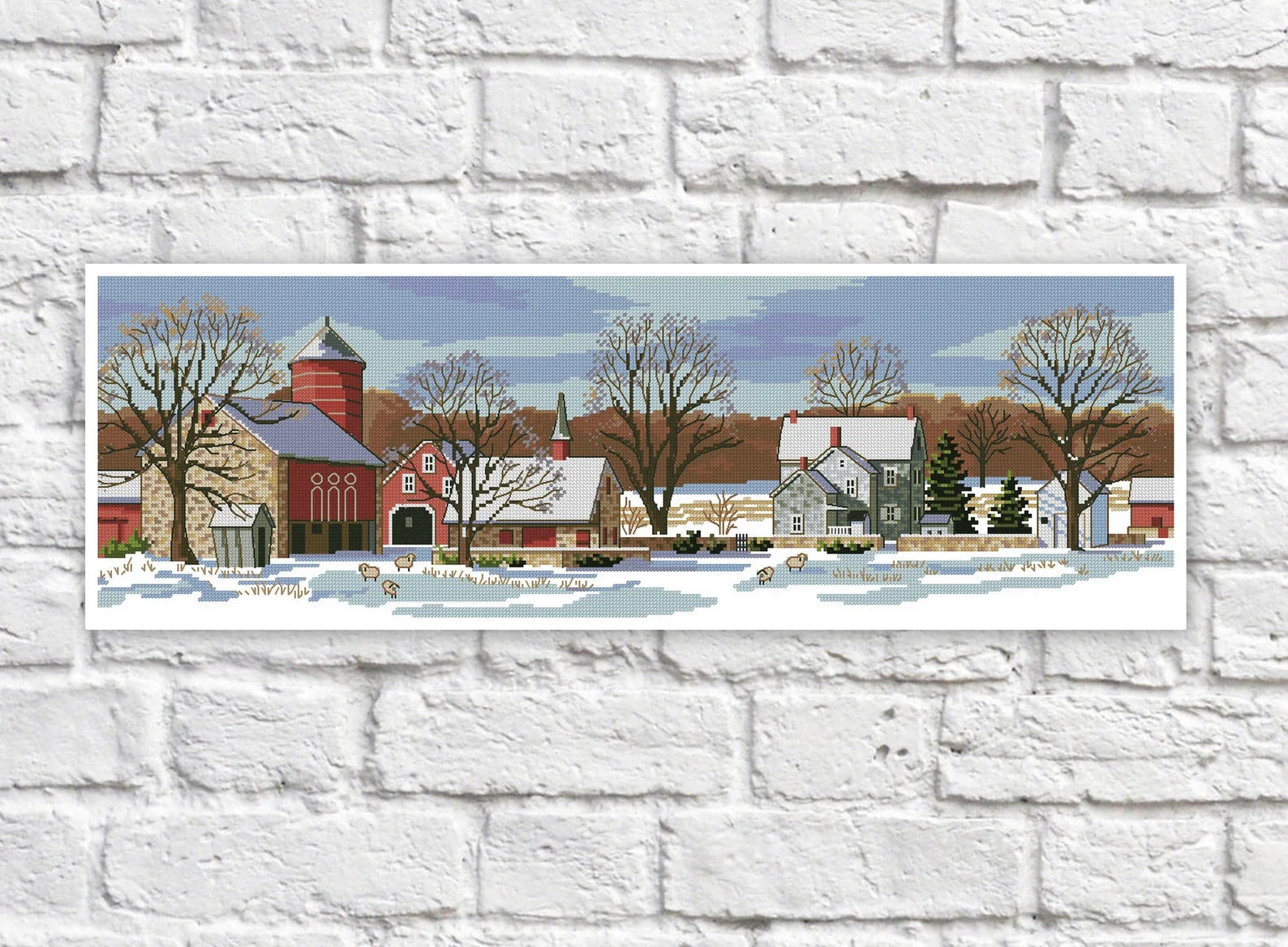 Village Cross Stitch Pattern Colorful Art DIY X-stitch Chart Needlepoint Pattern Embroidery Chart Printable Instant Download PDF Design