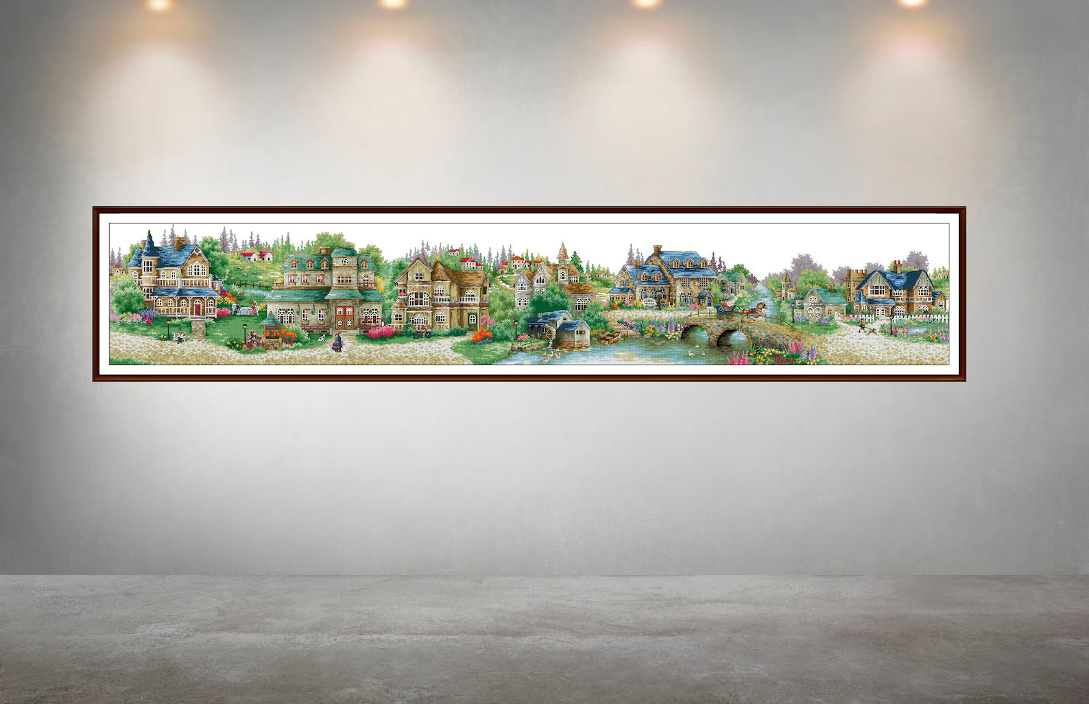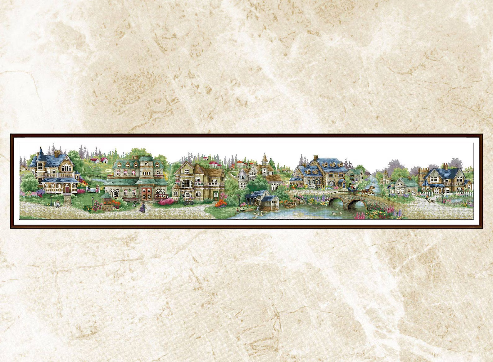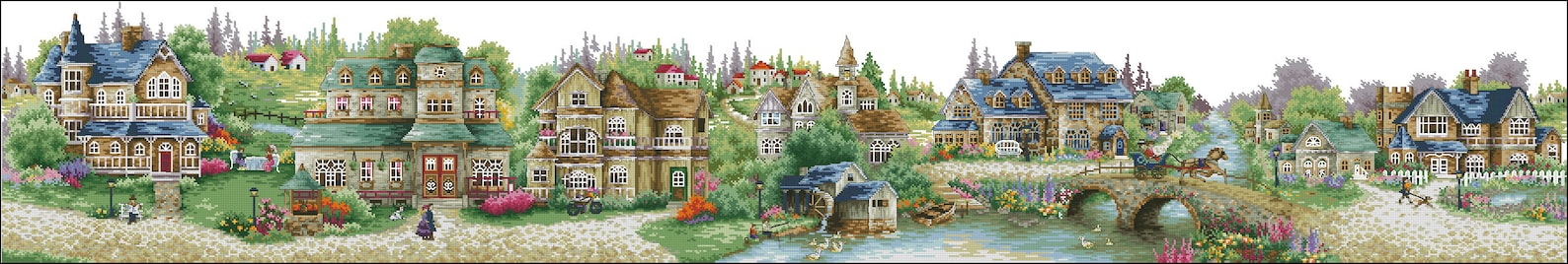 Village Cross Stitch Pattern,Green Village,Victorian Style,Counted cross stitch,Pattern Keeper,Pdf,Instant Download