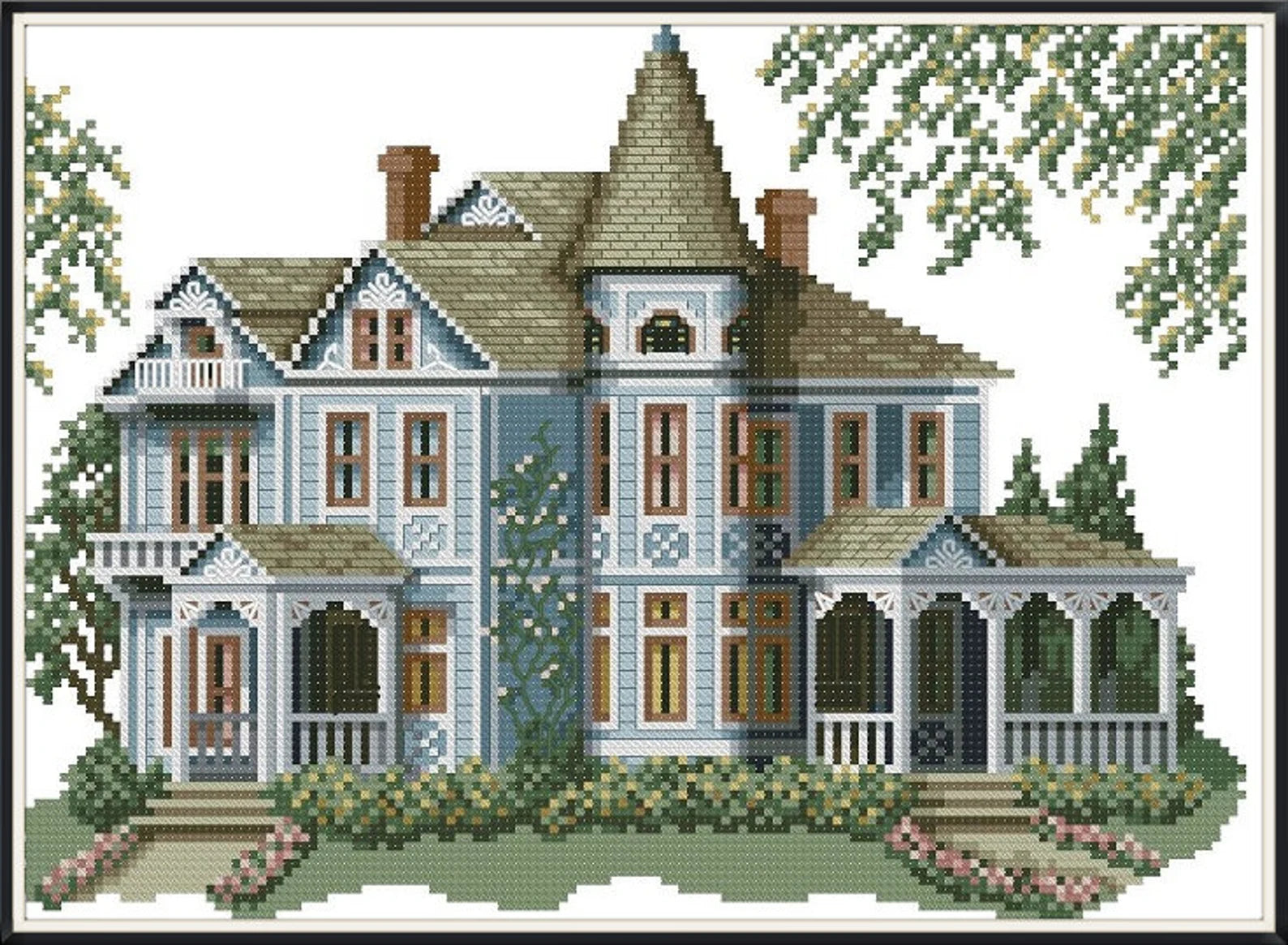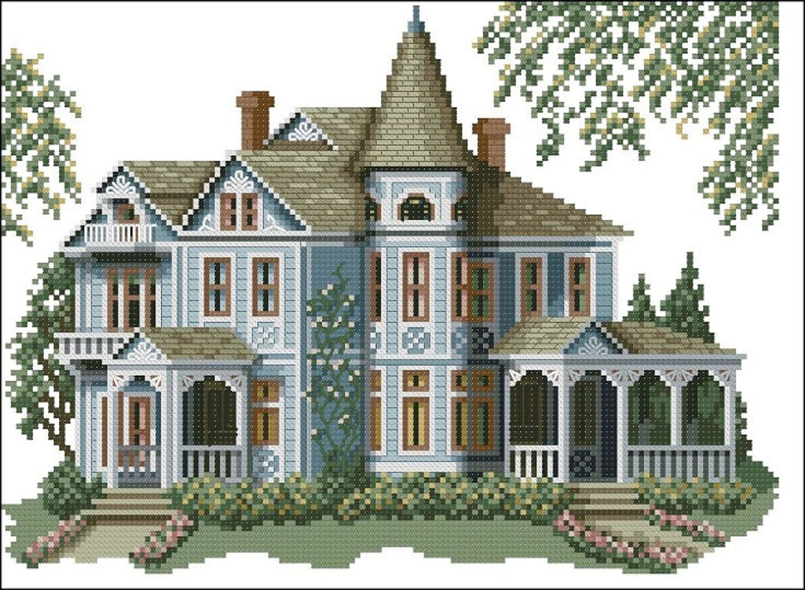 cross stitch pdf - Victorian House - Morton Home, Hamilton, Missouri - Vintage embroidery pattern - Digital download - Reproduction