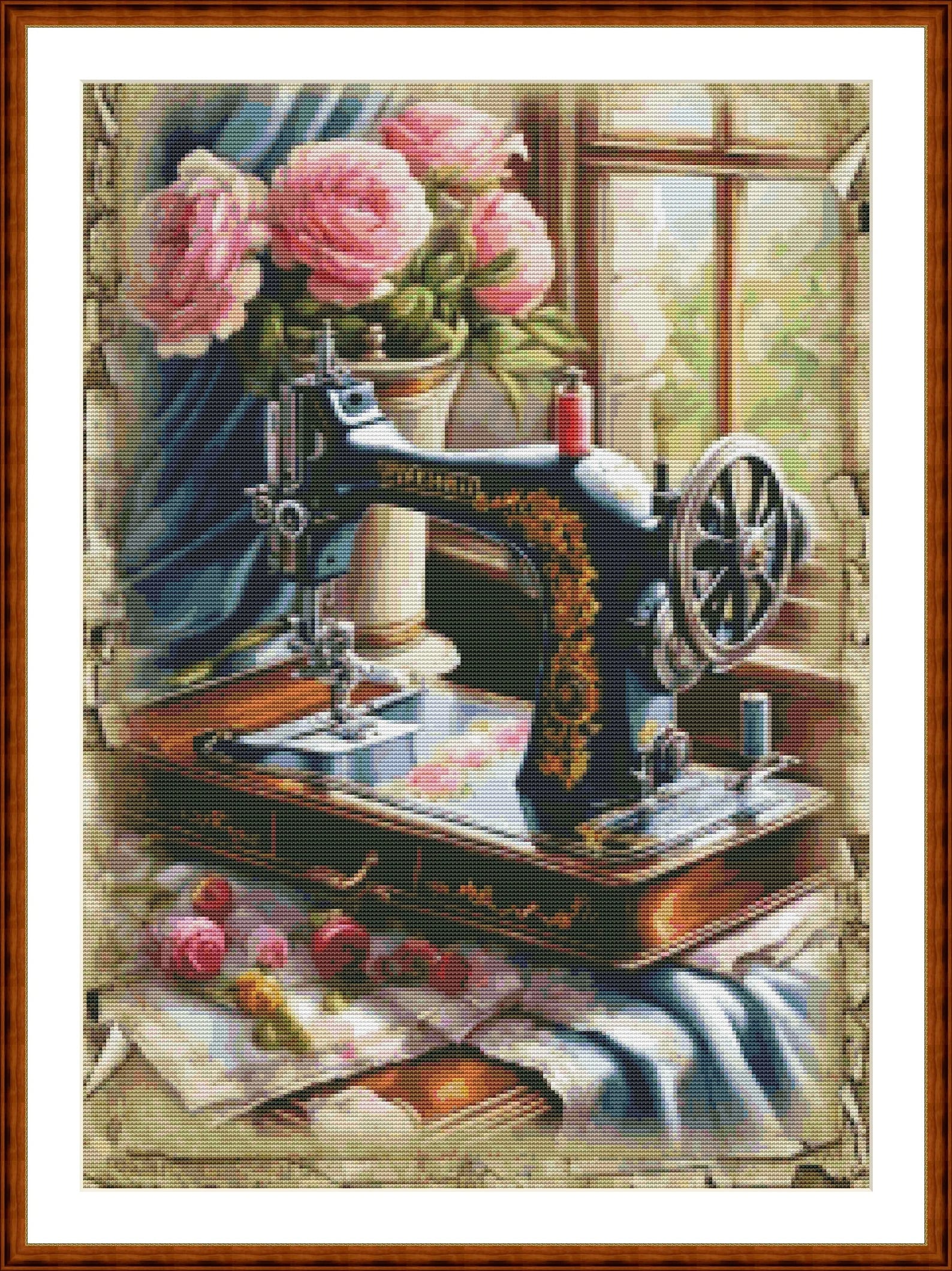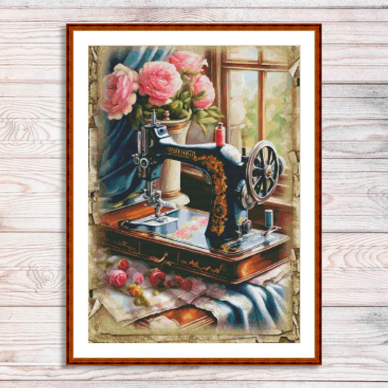 Vintage sewing machine Counted Cross Stitch Pattern Bouquet of roses Digital Pattern Sewing room Pattern Hand Embroidery Needlepoint chart