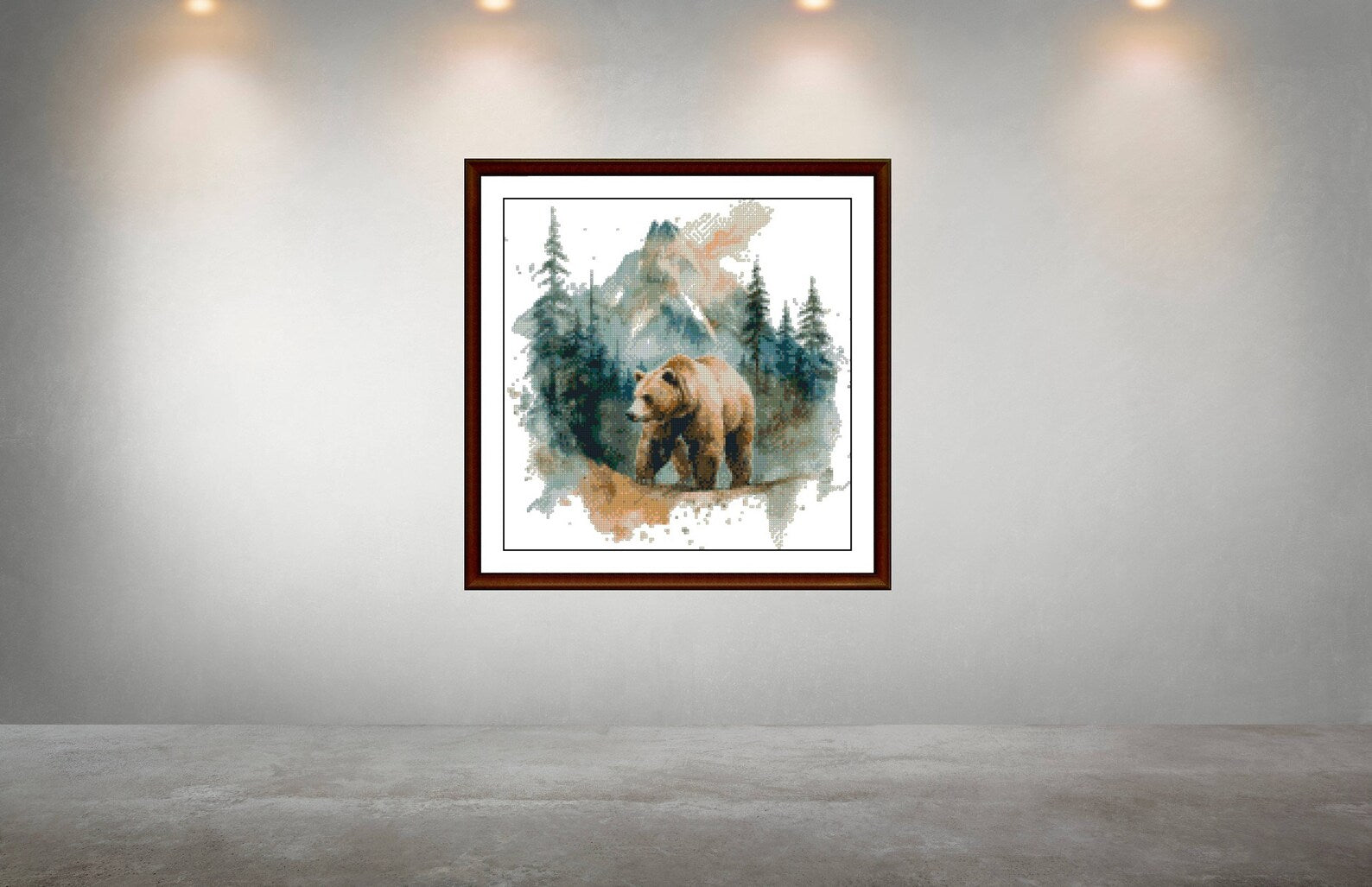 Watercolor Cross Stitch Pattern,Bear in the Wilderness,Landscape,Nature,xtitch,Pattern Keeper,PDF,Instant Download