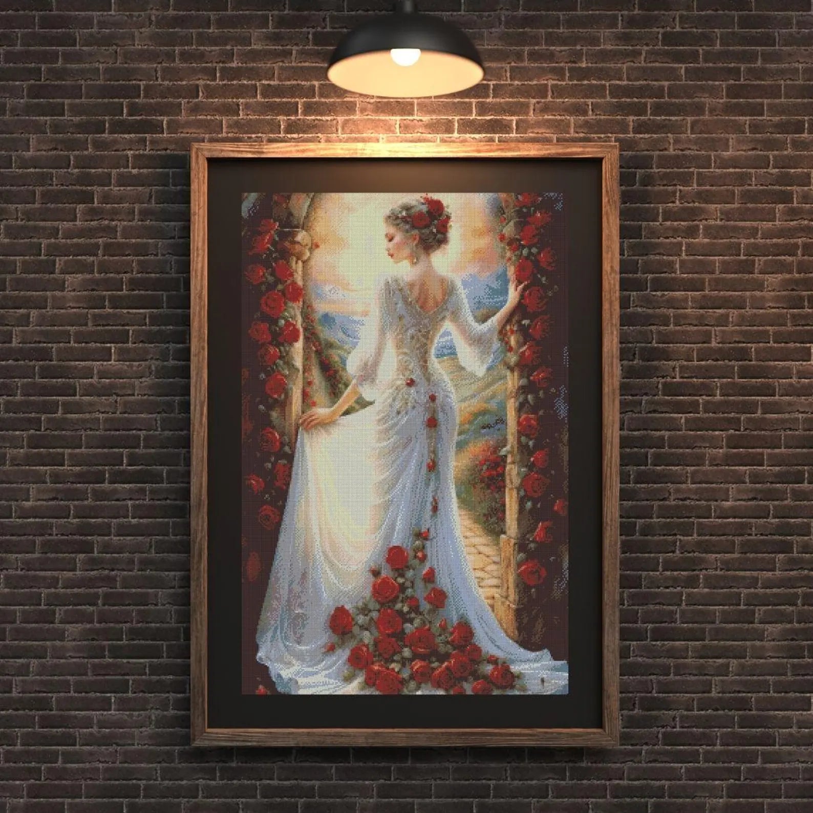 Whispers of Roses: Enchanted Bride Cross Stitch Pattern- Printable Chart PDF Format Needlework Embroidery Crafts DIY DMC color