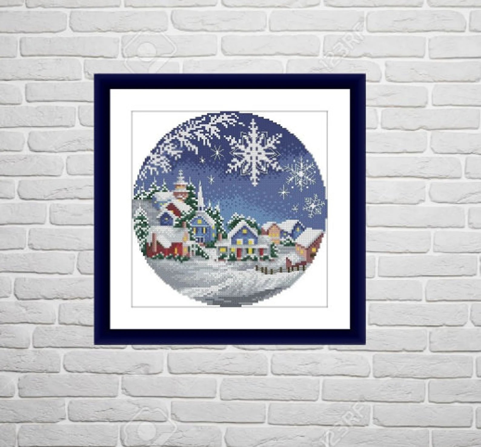 Winter Cottage Counted cross stitch pattern winter landscape Digital cross stitch chart winter woodland PDF christmas cross stitch pattern