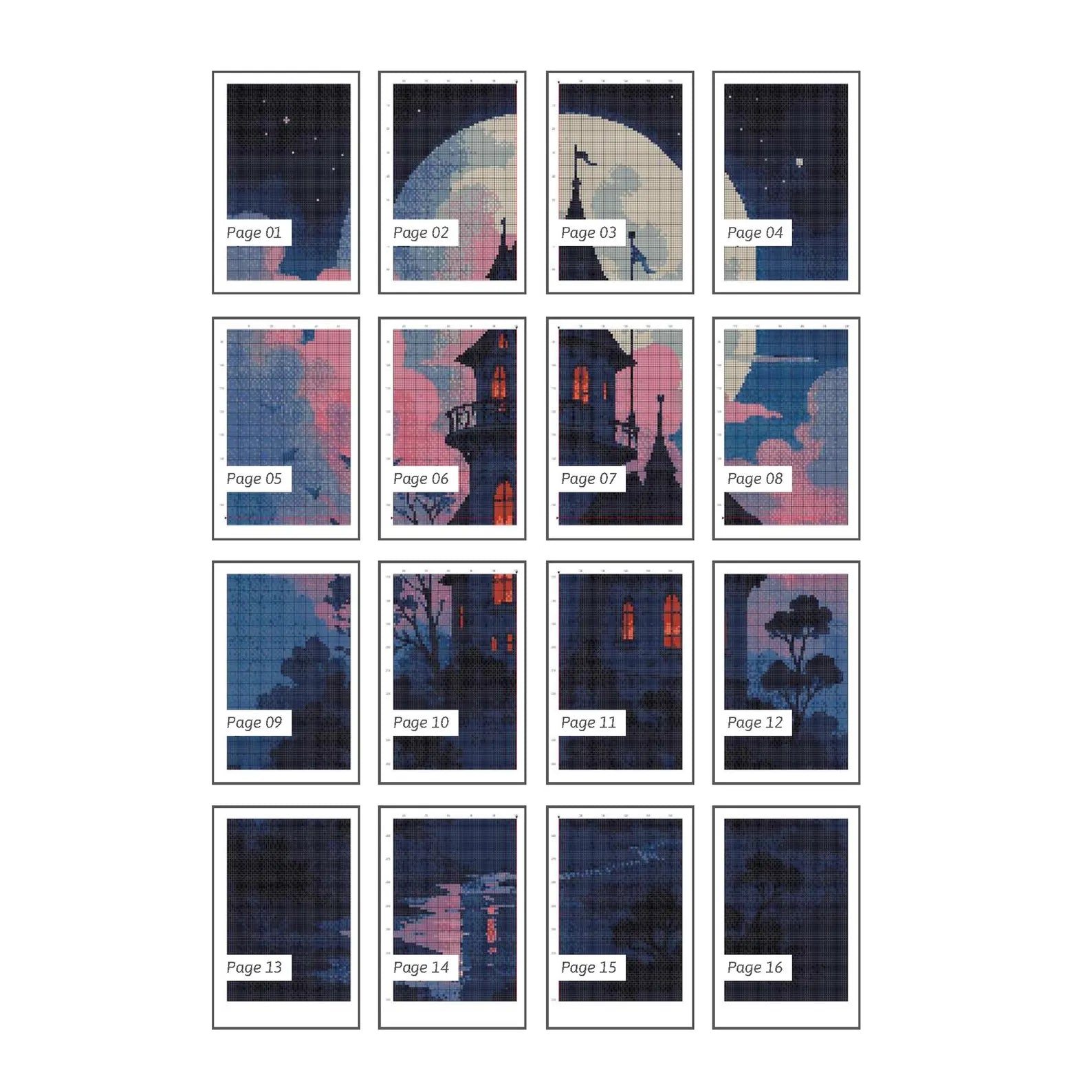 Witch's Tower Cross Stitch Pattern | Spooky Halloween Cross Stitch Chart Download | Witchy Horror Cross Stitch | Goblincore