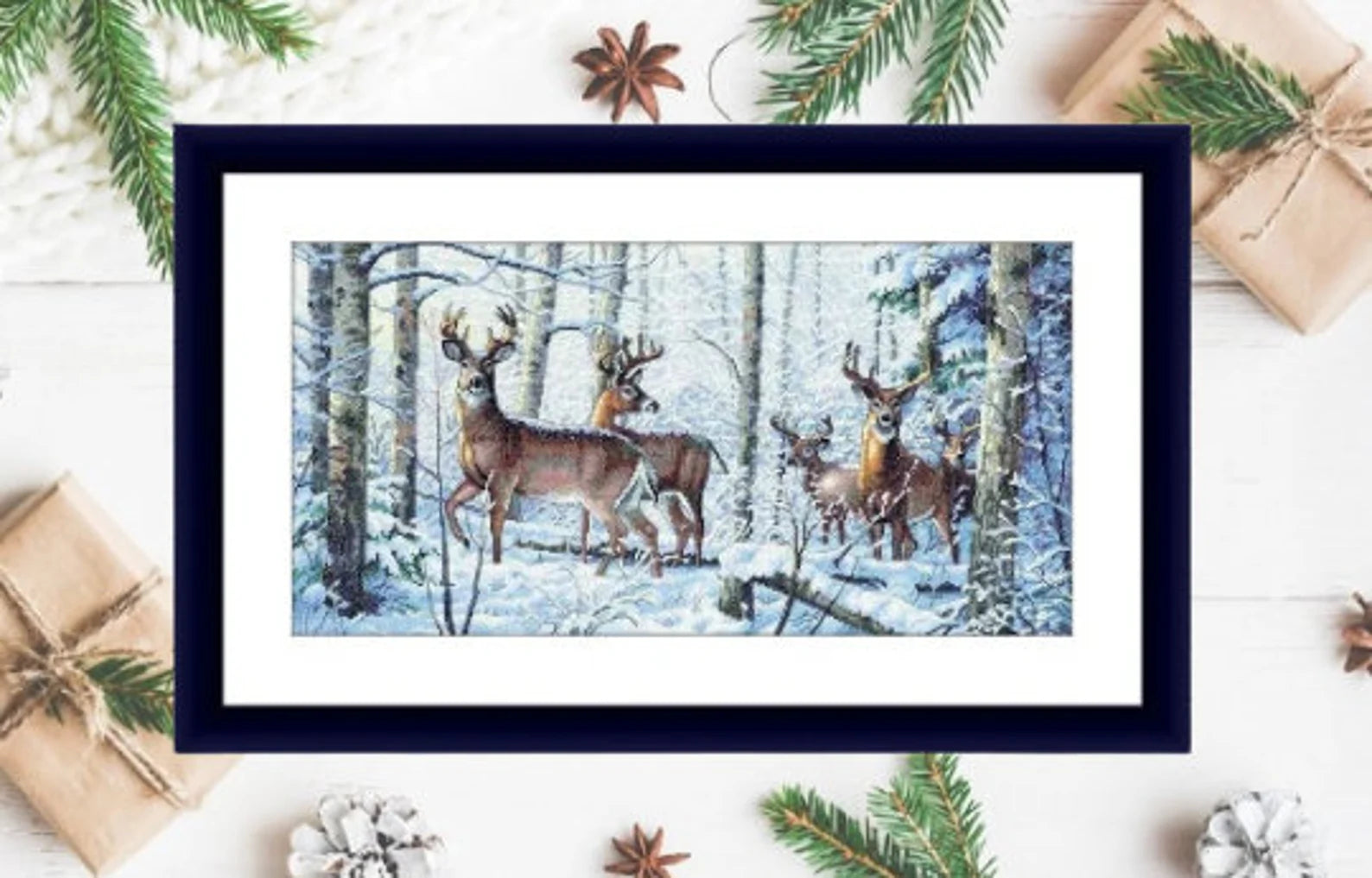 Woodland deer Counted cross stitch pattern PDF winter landscape Digital cross stitch chart woodland deer PDF cross stitch pattern